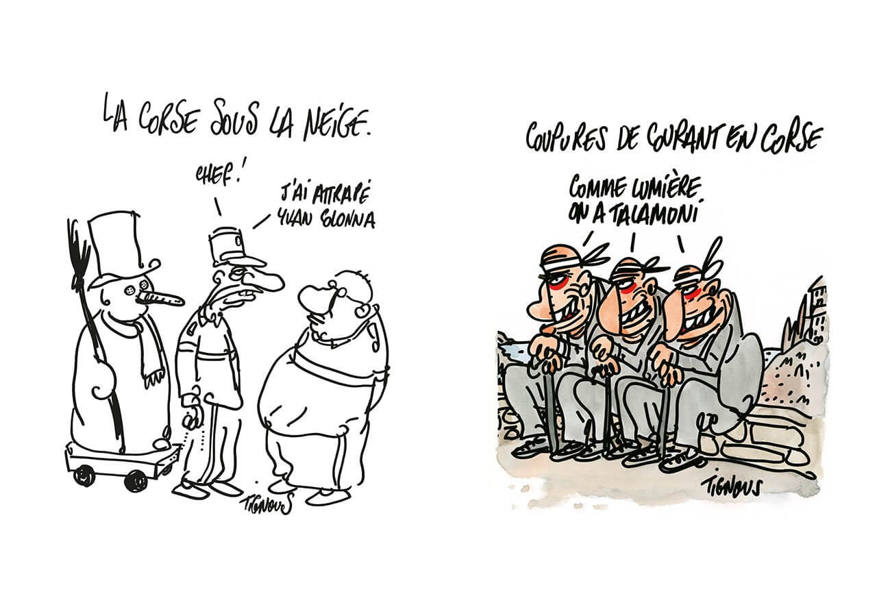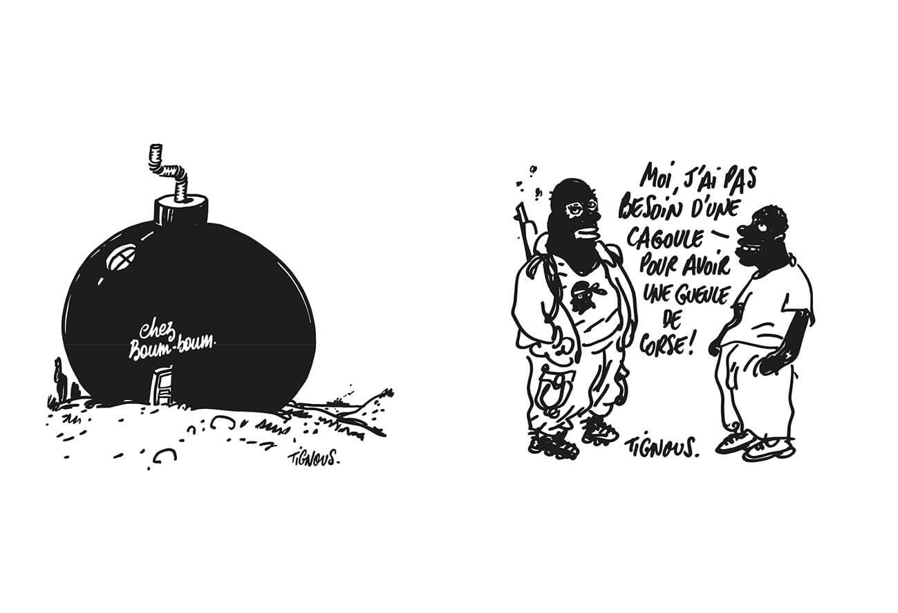Recueil de 96 pages de Tignous sur le thème de la Corse, il regroupe des illustrations parues dans diverses revues et journaux. Préfacé par Jean-Témir Kerefoff, patron du piano-bar Chez Tao et ami du dessinateur, il confie : « Une de ces âmes qui se sont posées sur notre île et y ont déposé une empreinte indélébile, fraternelle et d’une infinie douceur ».