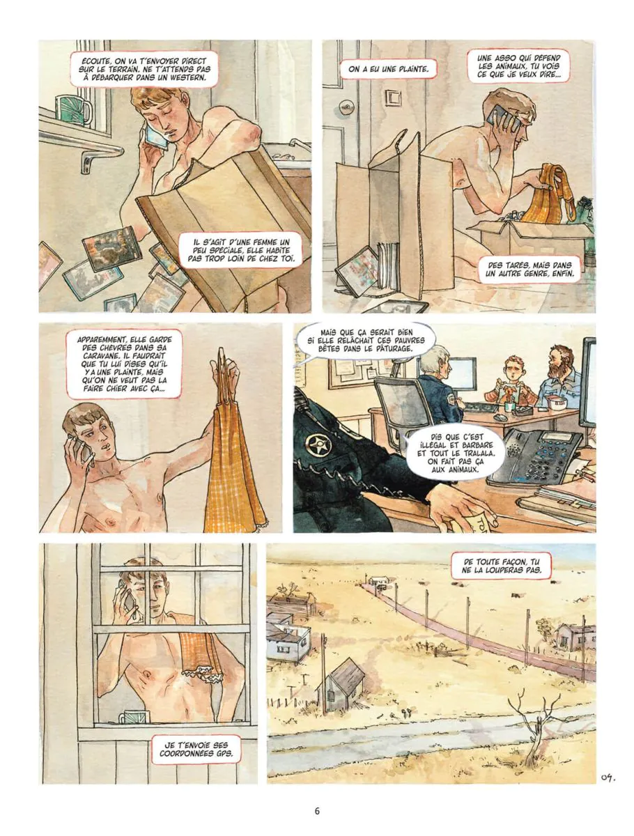 Pour adoucir ce climat âpre et parfois violent qui ressemble par endroits à un western, le travail à l’aquarelle de Benoît Blary (Cutsink Creek) fait merveille. Il excelle dans la restitution des cieux tourmentés et des grands espaces. Des dominantes de bleus délavés et de jaunes pâles emportent d’emblée dans ce western immobile et sensible. Vous aussi, vous aimerez peut-être Dirty Rose…