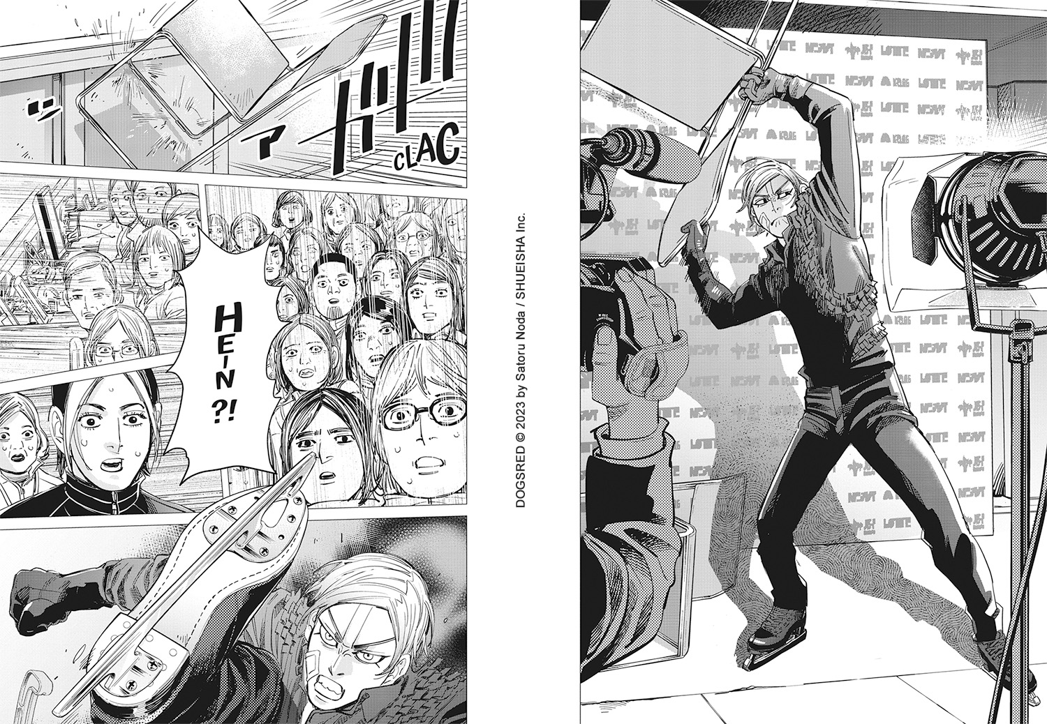 Après le succès de Golden Kamui, Satoru Noda revient avec un titre plein d’adrénaline chez Ki-oon. Au programme, des patinoires, des figures artistiques assaisonnées de coups de crosses, pour le plus grand des spectacles ! Avec Dogsred, le mangaka signe un nouveau titre plein d’humour et d’action chez Ki-oon.