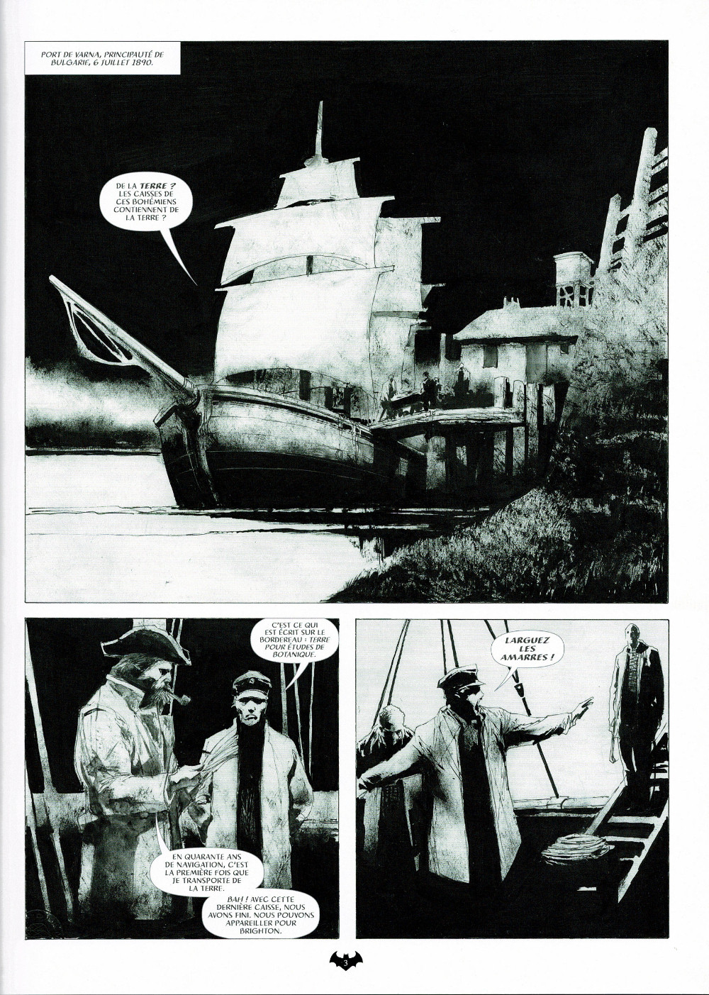 Cela commence par un drôle de voyage. Par une nuit de juillet 1890, un navire arrimé dans un port bulgare appareille pour l’Angleterre. Cap sur Brighton. Dans ses cales, des caisses pleines de terre… Étrange cargaison… Plus loin, en Hongrie, un certain Jonathan Harker arrivant de Londres se rend à un rendez-vous dans la demeure du Prince Vlad Dracula.