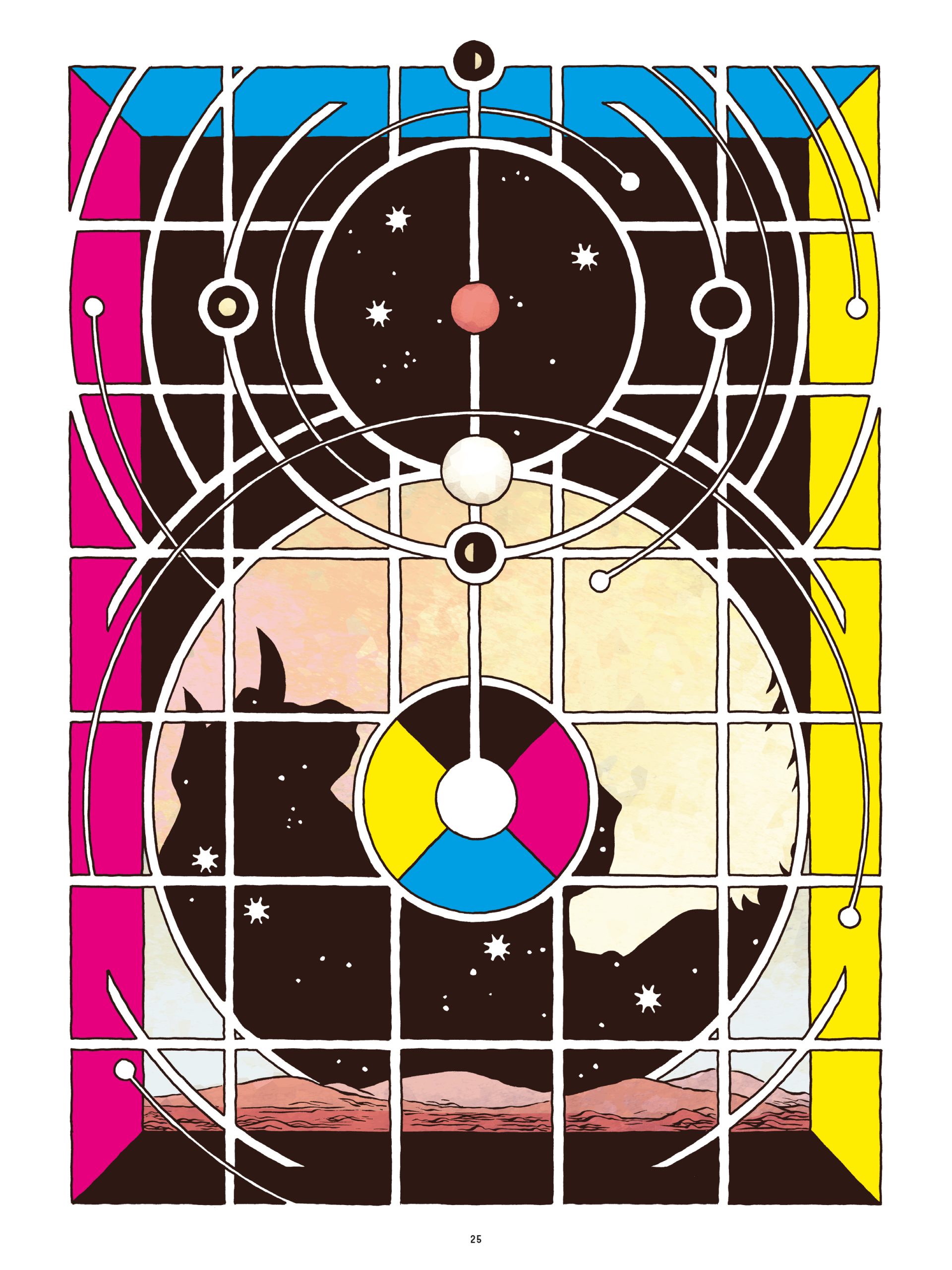 Considérant que les formes et les couleurs sont des leviers d’action, il stipule que le bleu serait « profond et spirituel », le jaune « éclatant et terrestre », le rouge « vibrant et puissant ». Trois interprétations qui conviennent fort bien aux personnages en question. Et dans une bande dessinée tissant un mythe de la création, invoquer de telles forces fondamentales pour guider le récit, ne serait pas infondé.