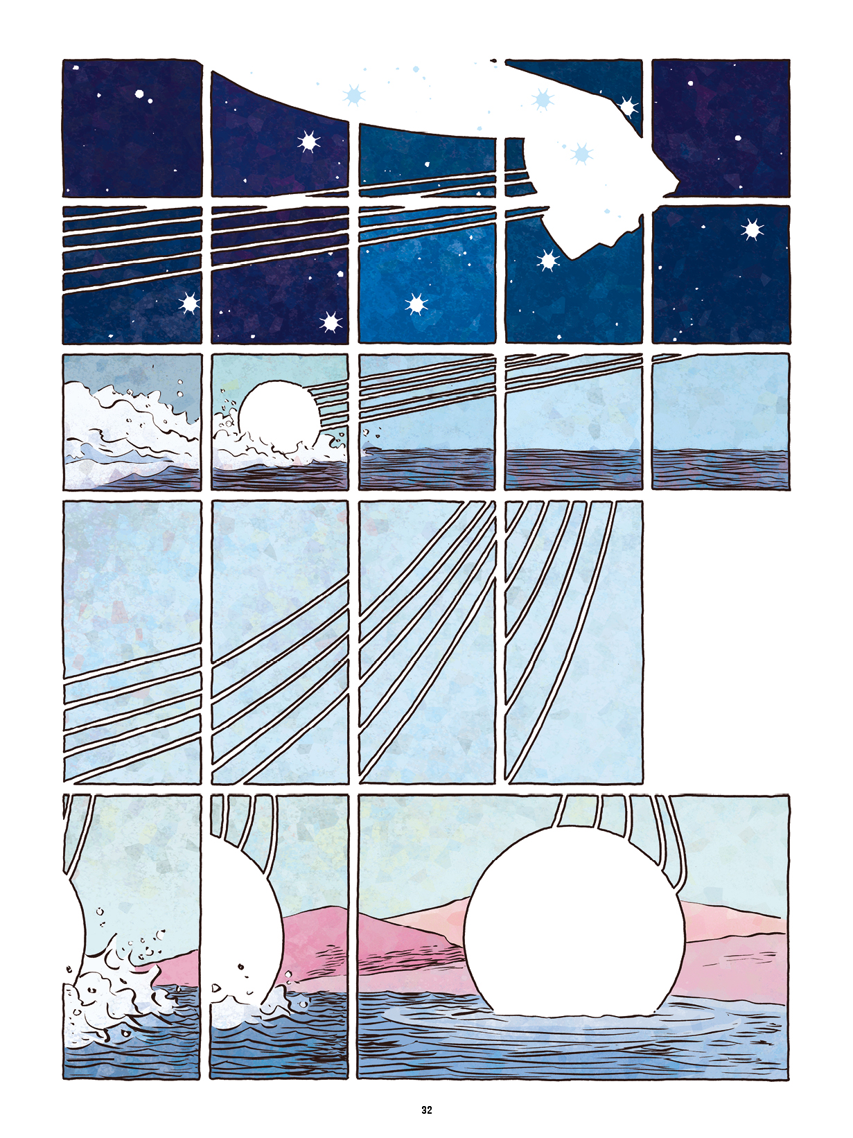 Jesse Lonergan, lui, est un adepte de la multiplicité des cases. Une même vignette peut être découpée en dix, ou douze cases. Dans quel but ? Suspendre le temps qui passe. Certes, les petites cases sont souvent utilisées pour montrer le temps court. Mais en les accumulant, en accumulant les gouttières, Lonergan vient au contraire étendre la durée de sa vignette.