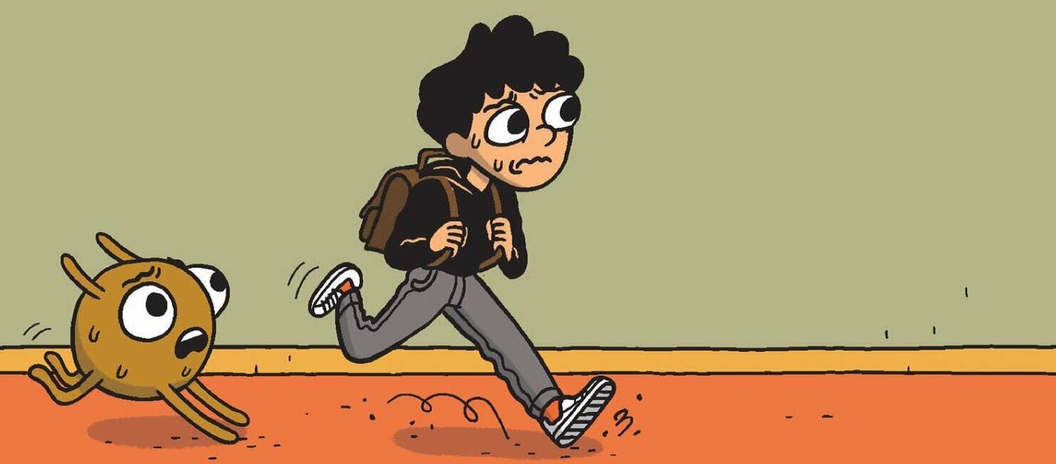 L’être le plus pathétique du collège, c’est ce que tente de persuader la boule d’angoisse d’Elliot à son propriétaire. Après L’homme le plus flippé du monde, Théo Grosjean s’attaque à l’anxiété d’un jeune adolescent dans Eliott au collège.