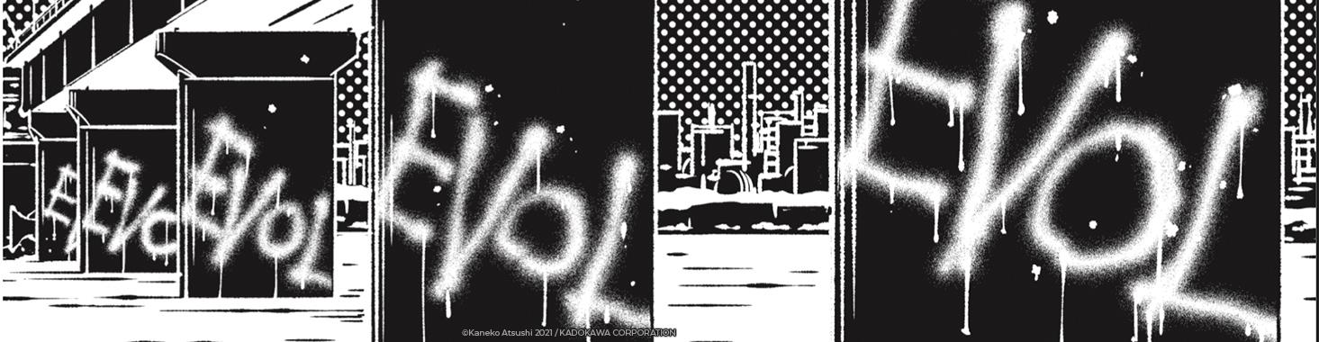 Atsushi Kaneko est un adepte de la critique sociale. À travers ses histoires trash, survoltées, presque légères dans leur régime de violence, l’auteur raconte la disgrâce, la fatalité de naître en bas de l’échelle sociale, la construction des monstres humains et leur lutte de survie. Dans Bambi et Search and Destroy (réécriture d’après Dororo d’Osamu Tezuka), l’auteur nous embarque dans une vendetta personnelle contre des sociétés hypocrites et pétries d’arrogance. Evol ne fait pas exception, et se rapproche encore davantage du lecteur en prenant comme point de départ trois adolescents comme les autres.