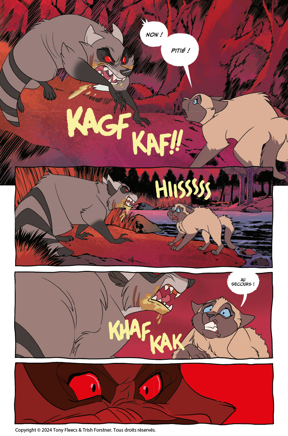 Mais en réalité, il serait extrêmement réducteur de voir en Feral une simple variation. En effet, loin de constituer une facilité scénaristique, le concept nourrit l’intrigue et l’enrichit même. Et effectivement confronter des chats à une épidémie qui ressemble à la rage est un réel à apport. Cela permet de créer des situations inédites et réellement efficaces. Les chats restent des animaux et agissent comme des animaux. Mais dans la mesure où on a accès à leurs pensées et leurs propos, on vit l’aventure avec eux.