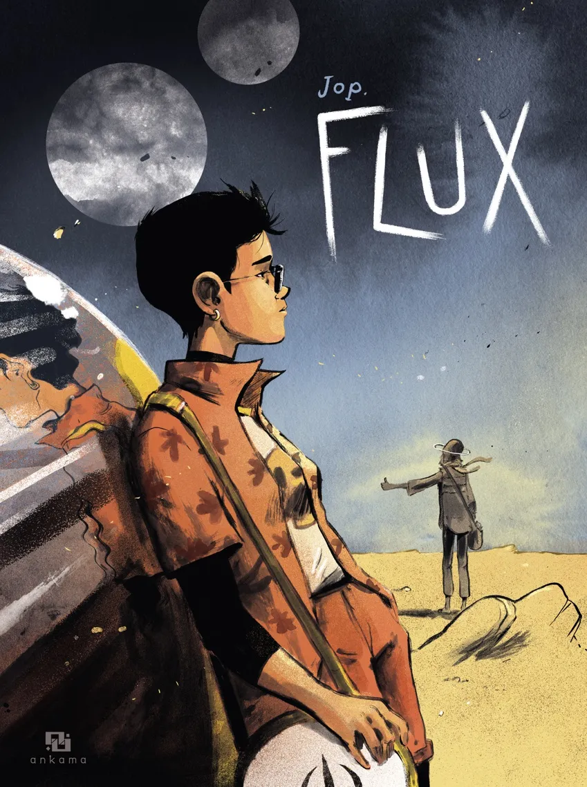 Flux est un titre riche, que ce soit par ce qu’il propose en termes de récit ou d’imaginaire. Conte écologique, road trip onirique, fable à la morale prônant le respect de l’autre et de la nature… Flux, c’est tout cela et même plus. Jop nous livre ici un titre où chacun trouvera du sens entre ces pages, que ce soit à travers la silhouette mystérieuse qui fait quelques apparitions, la quête de sens de Tildä face à un travail où elle ne s’épanouit pas, ou simplement dans les questions environnementales soulevées par l’auteur.