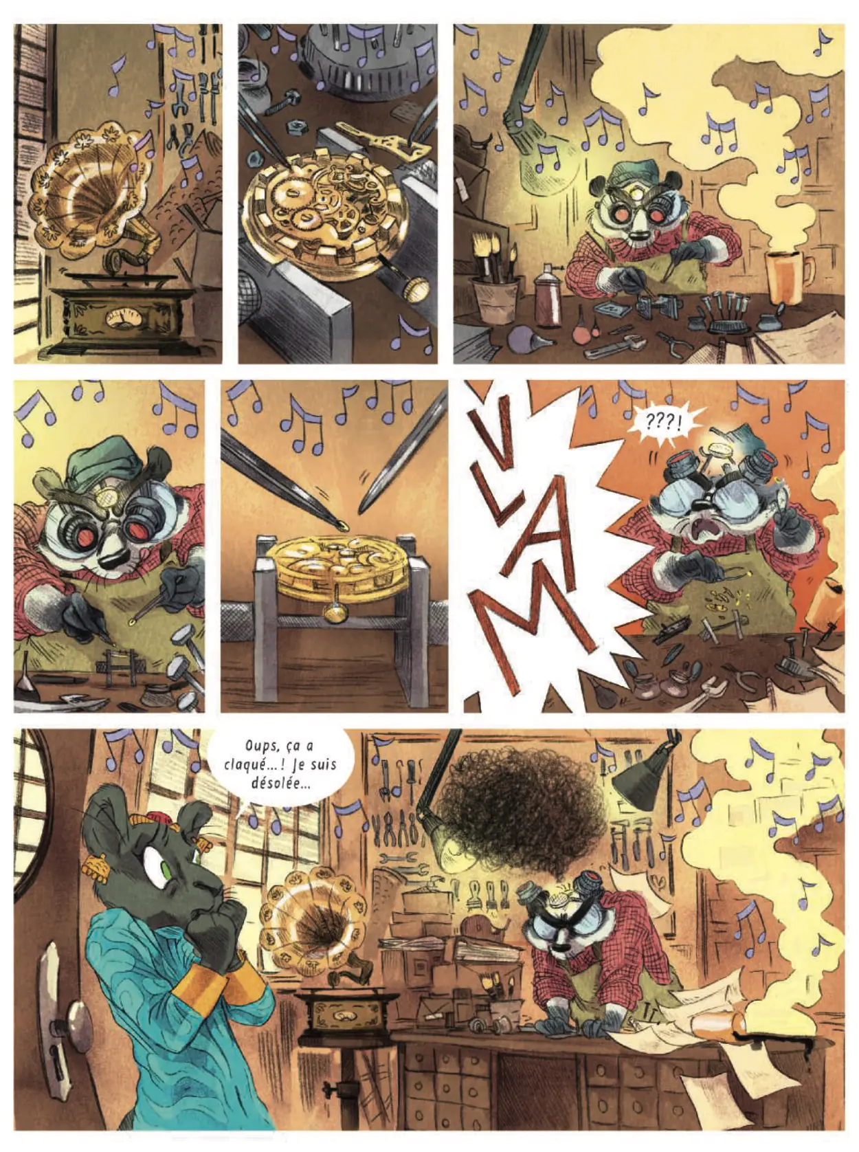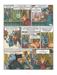 L’auteur des Nouveaux pirates et de L’esprit de Lewis compose des planches superbes. Son bestiaire est avenant. On appréciera la texture de leurs pelages et autres plumages. Leurs grands yeux sont hyper expressifs. Le tout apporte de l’humour à cette histoire dynamique et drôle.