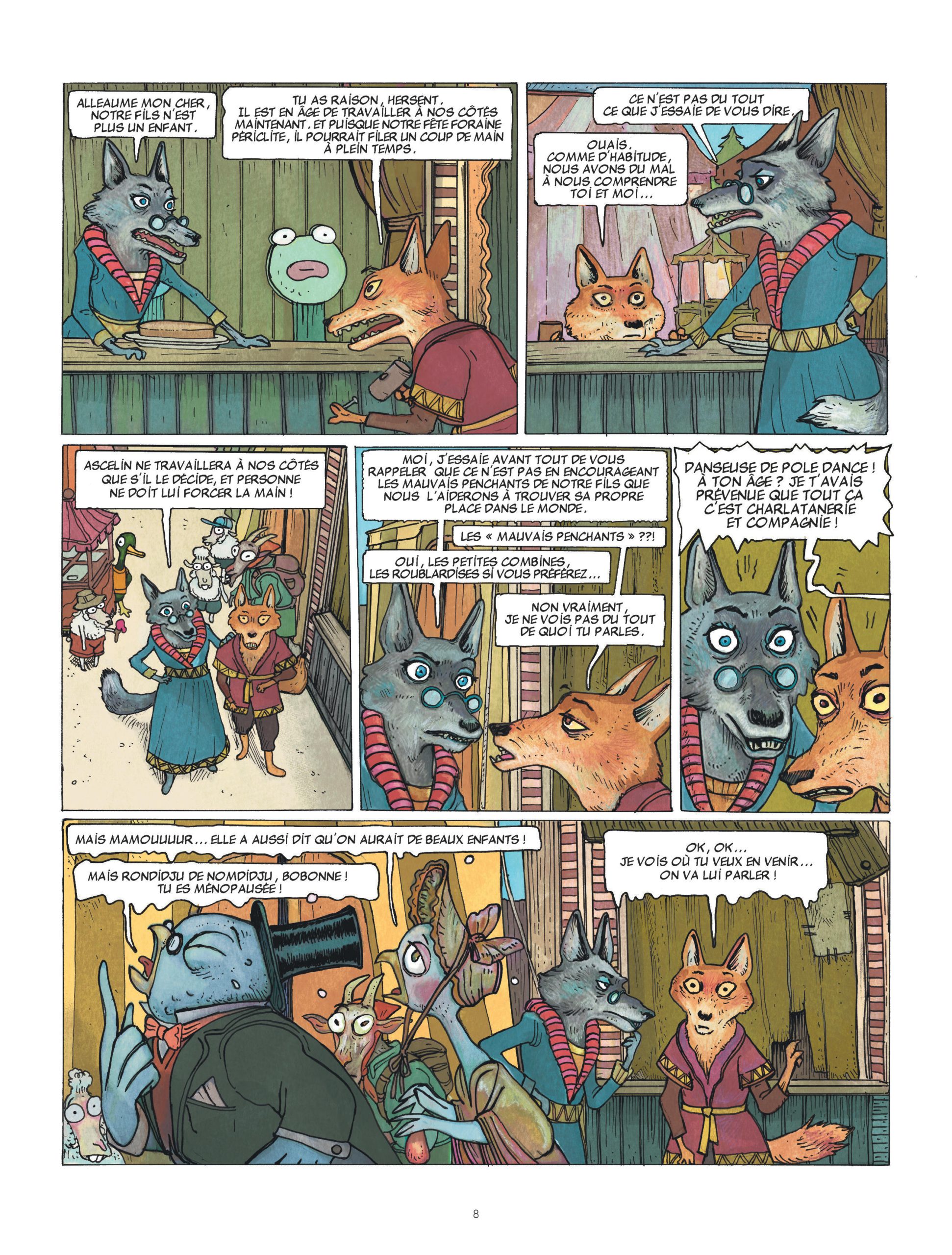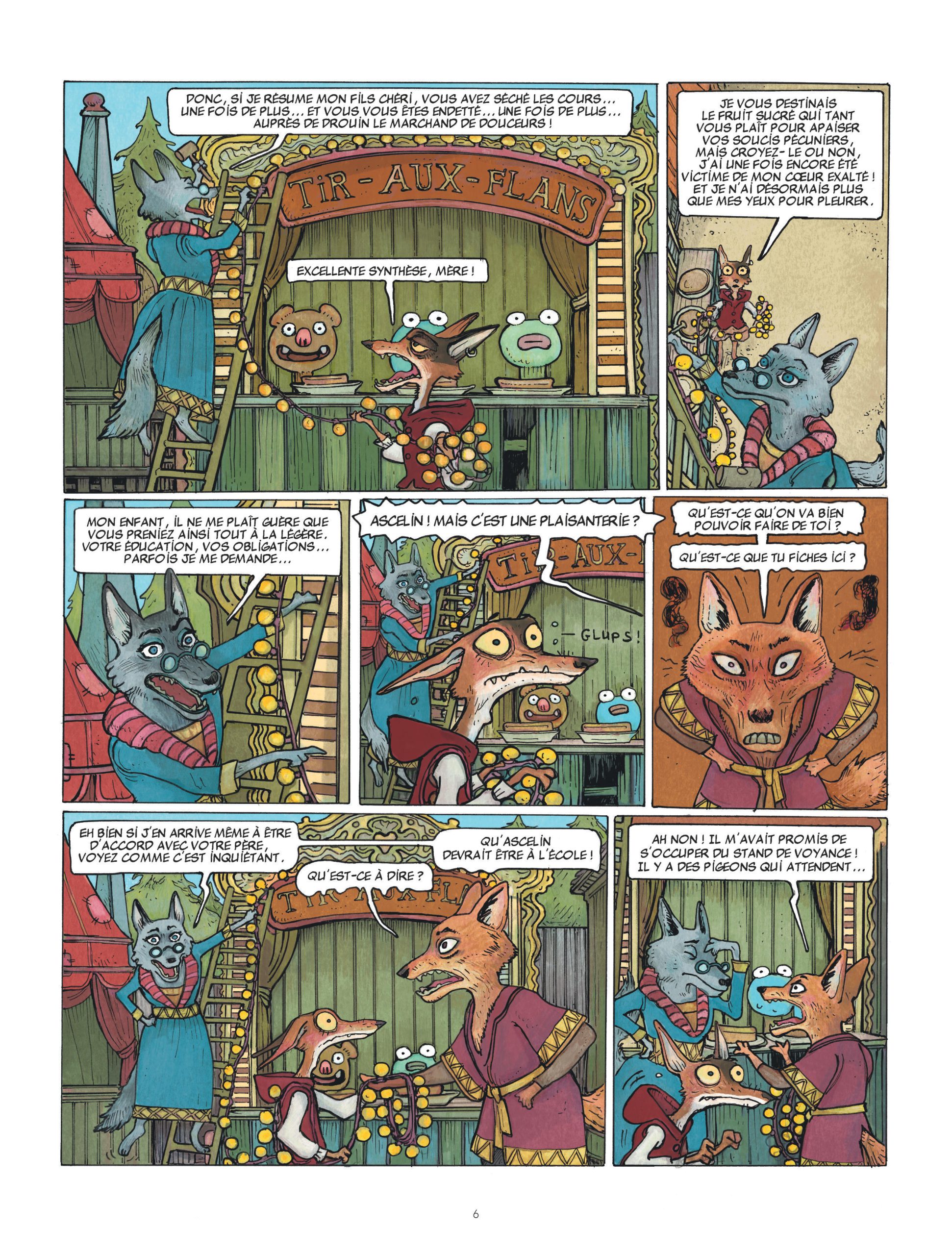 Ascelin et l’école, ce n’est pas ça. Le renard-loup n’aime pas trop y mettre les pattes. Ce qu’il préfère, c’est traîner dans la fête foraine de ses parents. Espiègle et facétieux, il aime y jouer plusieurs rôles et amuser ainsi les visiteurs.