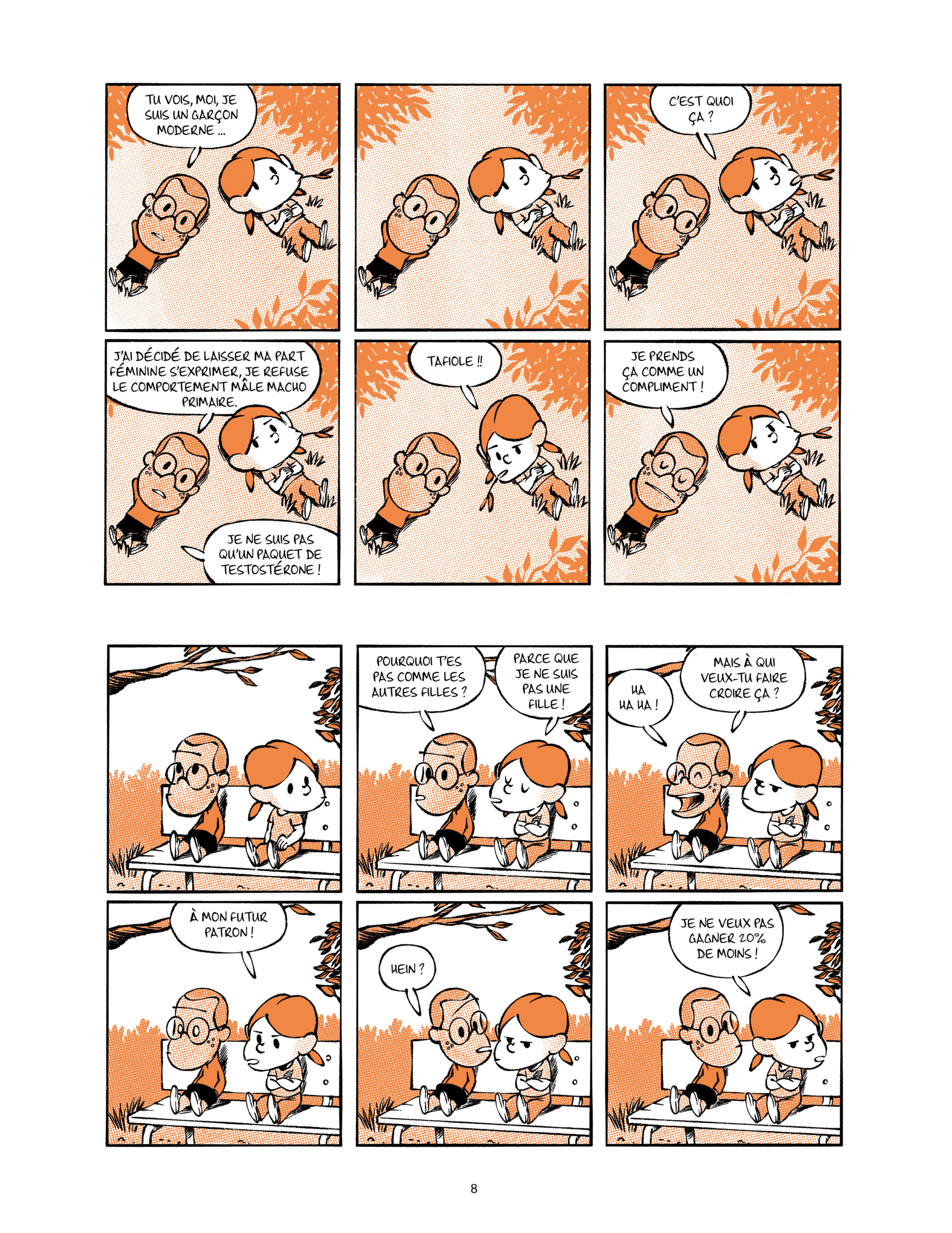 Résumé BD Fugue : Malcolm et Charlie détestent les conventions et faire tout comme tout le monde. Un duo de garçons manqués à ne pas manquer ! Malcolm ne se sent pas comme les autres garçons, et Charlie affirme ne pas être une fille. Ces deux garçons manqués se rencontrent par hasard dans un parc et vont faire connaissance au fil des pages et des saisons. James parvient à nous attendrir et à nous faire rire en nous racontant cette rencontre et la manière dont leur relation évolue. Que se passera-t-il quand leurs parents se mettront en couple ? De multiples sujets d’actualité sont évoqués à travers le regard de deux enfants étonnamment lucides sur le monde dans lequel ils grandissent : le genre, le patriarcat, la retraite, la guerre, le réchauffement climatique… La maturité de ces enfants et leurs questionnements sur la vie crée un décalage humoristique irrésistible.