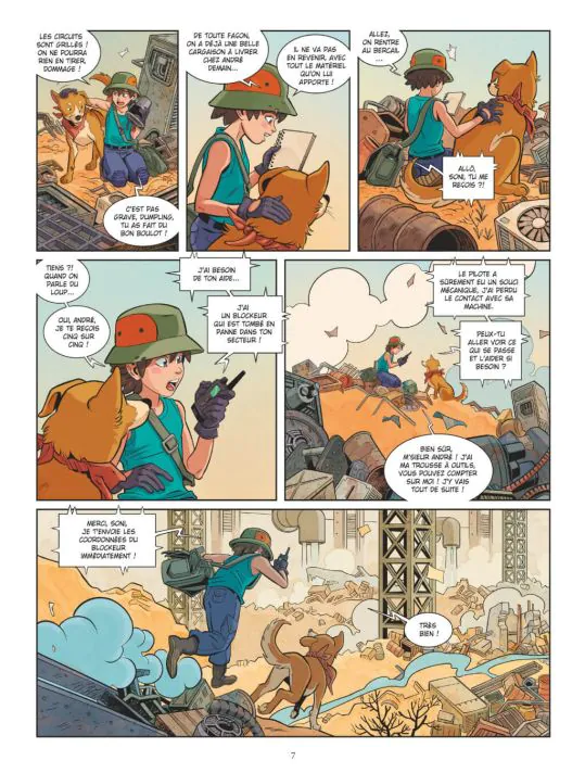 Gardiens de fer est porté par un adolescent curieux, enthousiaste et débrouillard. Personnage très attachant, il fait équipe avec son chien Dumpling. Sans trop en dévoiler, l’animal déclenche l’intrigue forte de ce premier volume. Un tome qui laisse planer des secrets. Et si Soni devenait le leader de la révolte contre les Phantoms ?