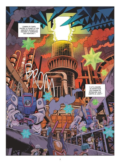 Ici, Christophe Alliel en imagine pleins pour son histoire. Des géants de fer qui ont envahi la Terre mais aussi UN, que Soni construit dans le plus grand des secrets. Pour donner du peps à son récit, il y glisse même un tournoi de méchas.
