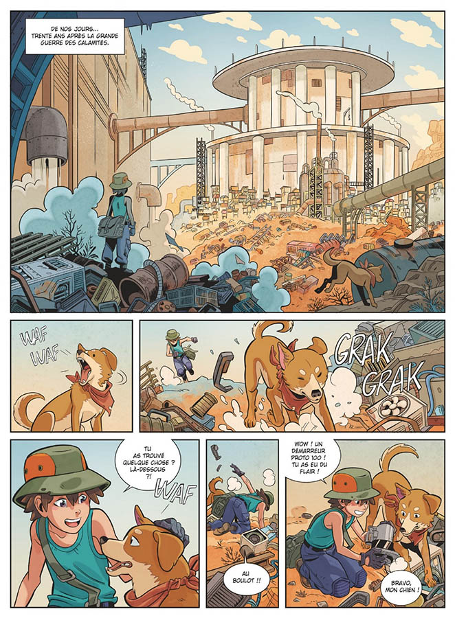 Alors que le jeune adolescent a trouvé un Proto 100, pièce rare, il surprend des raideurs, pilleurs de machines armés jusqu’aux dents.
