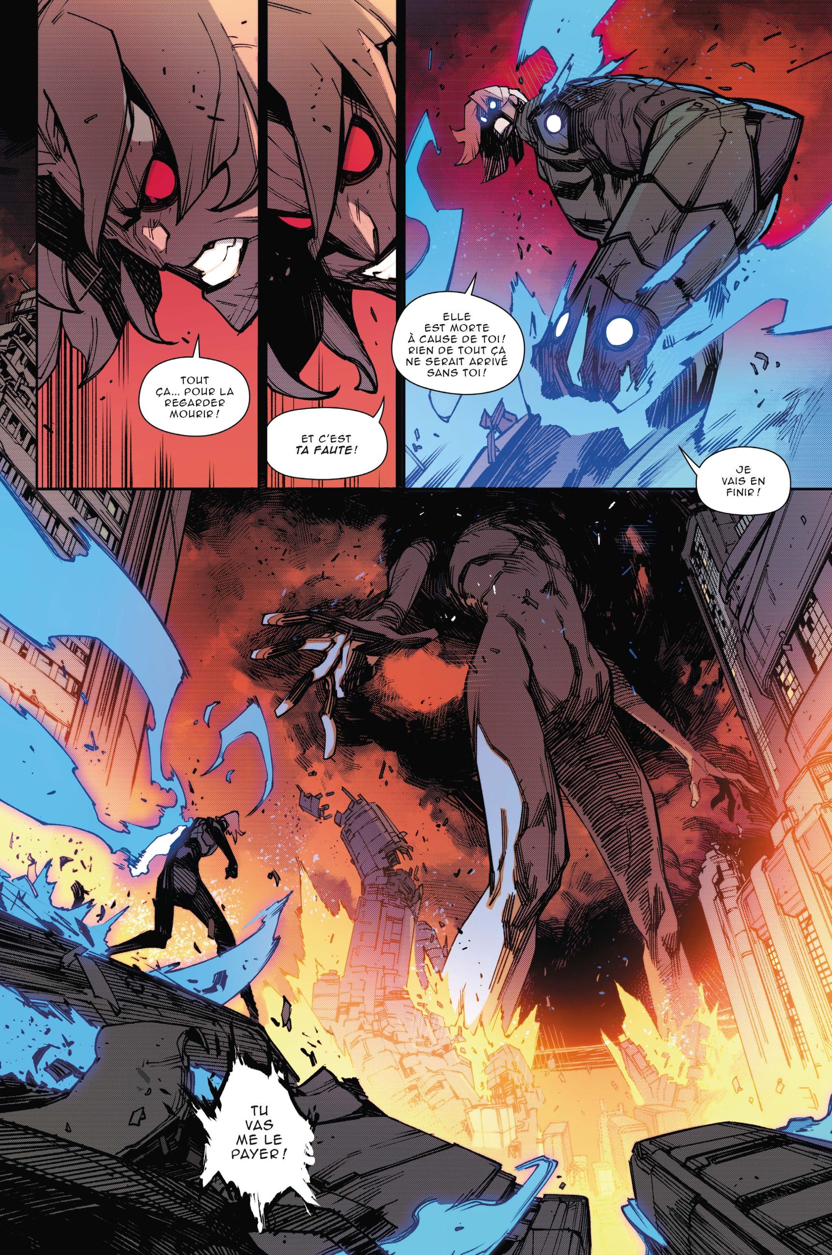 Avant de parler dessin, faisons une petite transition par la mise en scène. C’est-à-dire, par l’agencement des cases, des pages et donc de l’action. Dans une bande dessinée avec de la bagarre, c’est particulièrement important. C’est ici que l’on retrouve la « bd fusion » que symbolise le travail de Ludo Lullabi. Comic-book et Manga sont les deux marchés où l’action a été le mieux intégrée au dessin. Et cela se retrouve dans les planches de l’artiste français.