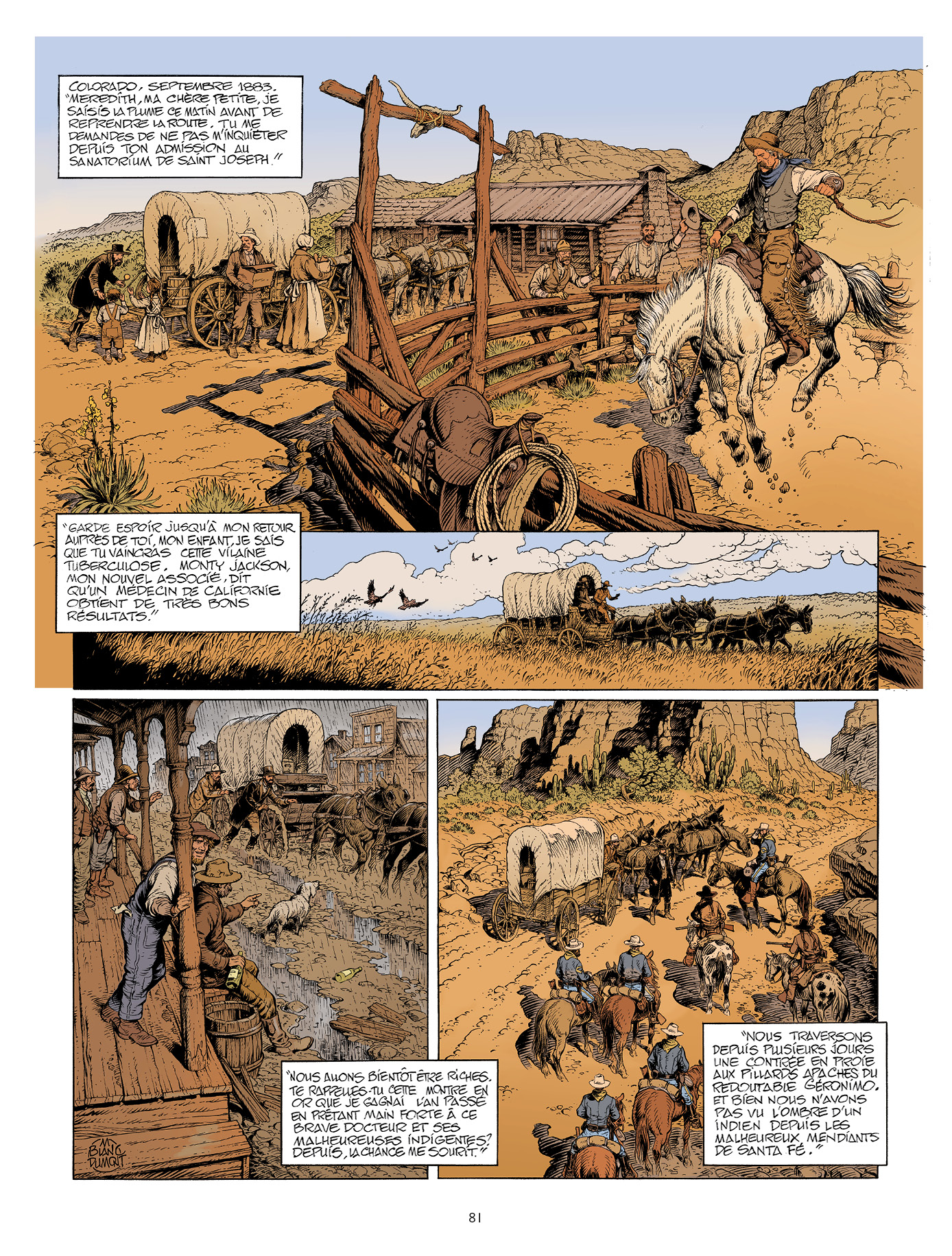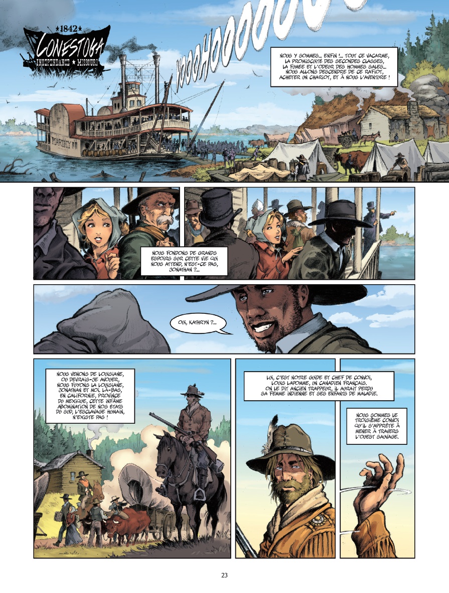 Résumé de l’éditeur : Le parcours sauvage et violentd’une montre pendant la conquête de l’Ouest.Un western qui sent la poudre et la boue… En quatorze histoires, Go West young man retrace la conquête de l’Ouestaméricain, de 1763 à 1938. Des conflits des grands lacs au désert duMexique, les destins se succèdent. Trappeurs et pionniers, tribus indiennes,desperados et prostituées vont se battre et survivre dans les grandes plaines,les villes champignons et les guerres interminables. Si les grands thèmes sontà l’honneur dans cet album, c’est le côté obscur des Hommes qui ressort,présentant avec un goût amer le rêve américain. Racisme, génocide indien,condition des femmes, guerres et misère. Go West young man est un hommageau western, mais un hommage lucide. Texte : Tiburce Oger. Dessins : Christian Rossi, François Boucq, Patrick Prugne, Hugues Labiano, Michel Rouge, Michel Blanc-Dumont, Félix Meynet, Enrico Marini, Dominique Bertail, Ronan Toulhoat, Benjamin Blasco-martinez, Paul GASTINE, Steve CUZOR, Eric HERENGUEL, TaDuc, Ralph MEYER.