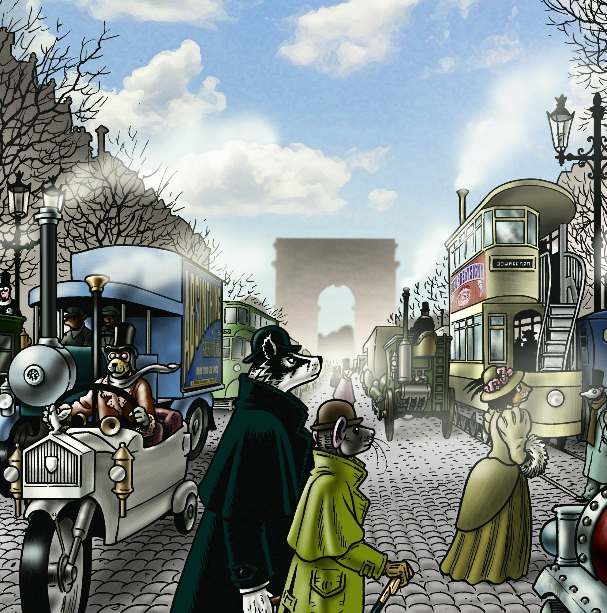 Grandville c’est un excellent polar, un récit qui pulse, qui dézingue à tour de bras. Une vraie aventure steampunk où les machines volantes rivalisent avec les armes de guerre aux mains des malfrats et de la police. Bryan Talbot met en scène un Paris Art déco dans une uchronie intelligente. Les artistes de cette période sont là, telle Sarah Bernhardt.