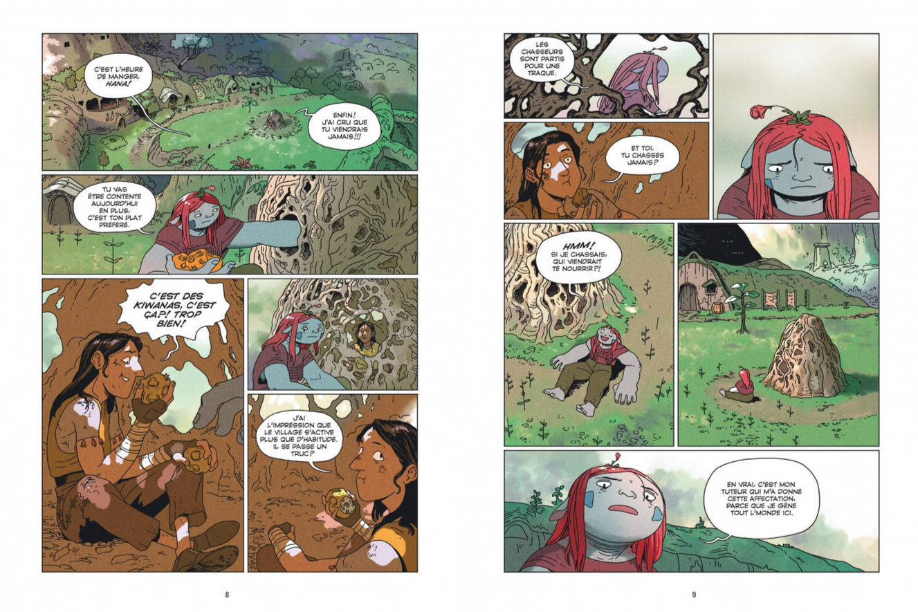 Issue d’une tribu de chasseurs-guerriers, elle se voit marginalisée pour sa naïveté et ses innovations ingénieuses jugées étranges. La rencontre d’Hana, une jeune humaine au passé mystérieux retenue prisonnière, sera pour elle un refuge autant qu’une porte ouverte pour trouver sa propre voie.