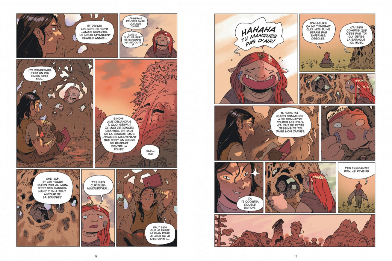 Hana, en bonne chercheuse, s’arme de son carnet de voyage rempli de précieuses informations et de croquis. Taru, forte de sa grande empathie, fonctionne quant à elle à l’esprit de déduction et sait faire confiance à son instinct. Les deux aventurières se complètent et s’accrochent à leurs convictions malgré les obstacles qui ne cessent de leur barrer la route. Le duo questionne notre éco-anxiété en nous offrant une aventure dans laquelle renaît l’espoir.