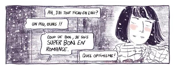 Même recette mais différents ingrédients. Lucie Bryon utilise toujours deux personnages principaux, de l’humour, et son généreux trait pour narrer l’amour. Cependant, on sent l’autrice désireuse d’aborder plus de choses que l’étrange période entre fin d’adolescence et âge adulte dont traitait Voleuse. C’est peut-être pour cette raison que le lecteur navigue entre trois différents récits et donc plusieurs duos.