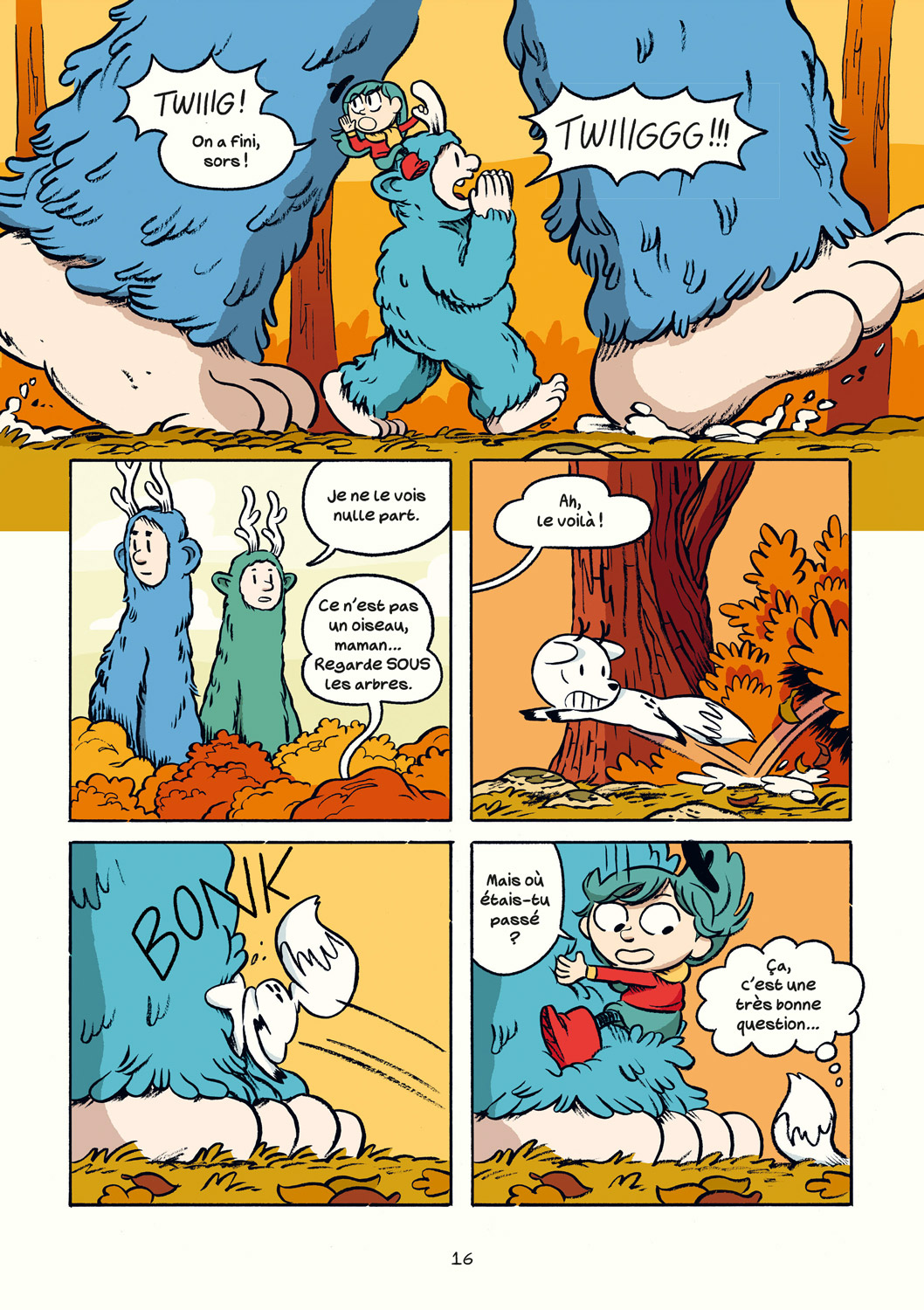 On adore suivre Twig à travers ses aventures. Bien que lui et Hilda ne se comprennent pas totalement, du moins pas avec des mots, la complicité qui s’initie entre le lecteur et l’animal est importante. Car Twig nous parle, à travers le papier, espérant aider Hilda, motivé par sa curiosité et son envie d’aventure. Son côté facétieux, ses réflexions, ses mimiques, Twig est définitivement un personnage attachant et presque plus proche de nous qu’Hilda par moment. Il vient en aide à Hilda sans qu’elle s’en rende compte, faisant de nombreux clins d’œil aux jeunes lecteurs.