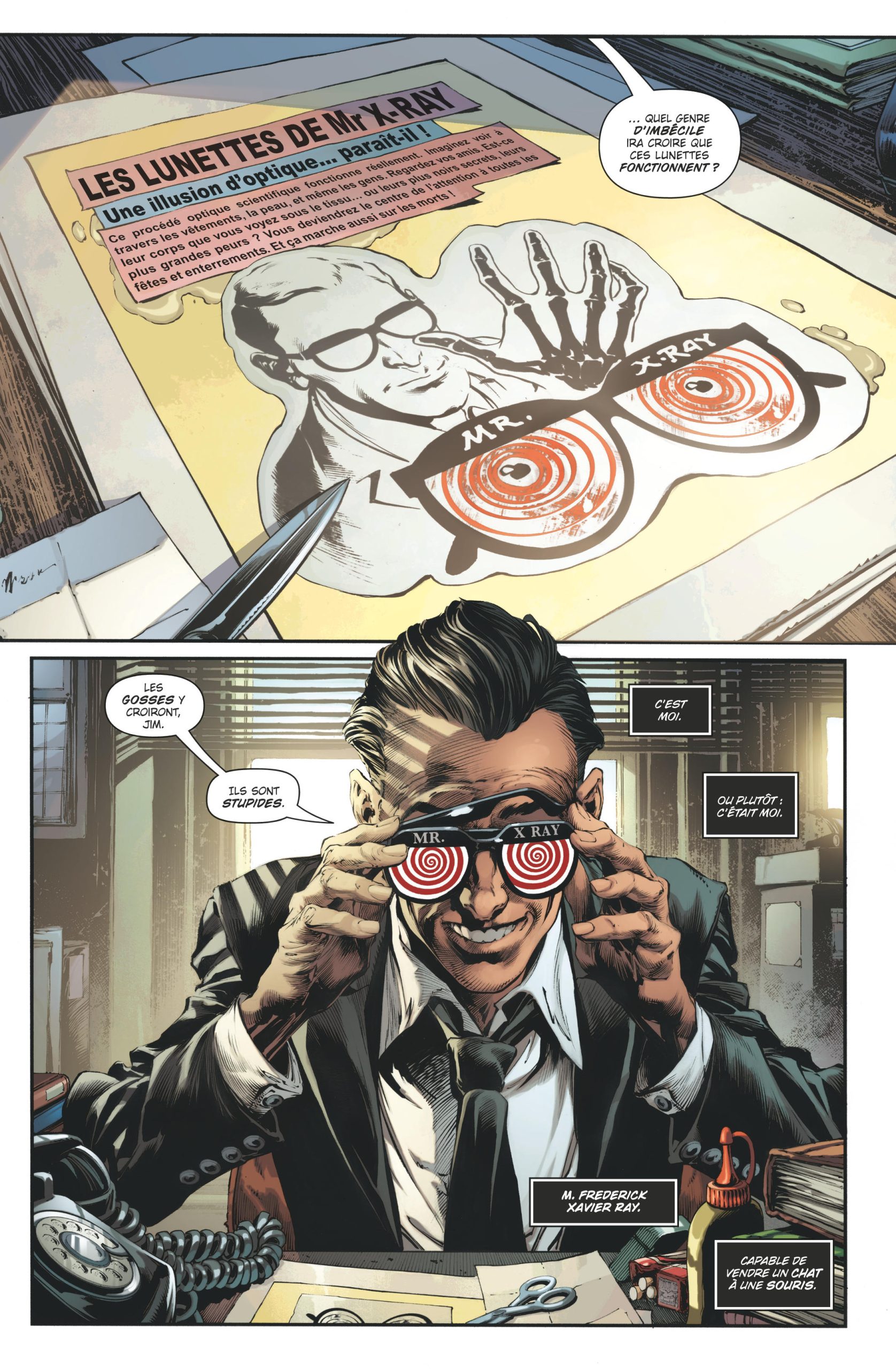 Et c’est le cas de Frederick Xavier Ray, Mr X-ray. Un ancien publicitaire de Madison Avenue à la langue de velours flatteuse et trompeuse. Après quelques déconvenues professionnelles, Mr X-ray décida de monter une boîte de distribution de gadgets inutiles, avec pour cible principale les enfants qu’il juge débiles et qu’il méprise. La première personne qu’il rencontra dans Hyde Street fût bien entendu Pranky, qui décida d’embobiner l’embobineur plutôt que de le zigouiller. Ainsi il piégea Mr X-Ray et ses iconiques lunettes à spirale dans ce purgatoire. Inutile de préciser que ces deux-là sont en conflit permanent. Arrivée en 1966 et avec seulement 2103 âmes collectées, Mr X-Ray devrait booster son rendement s’il veut un jour trouver la sortie. S’il veut espérer rattraper le temps perdu avec sa fille Judy, 12 ans en 1966, et dont il apprit l’existence le jour où, après l’avoir envoyé paître, il tomba sur Pranky.