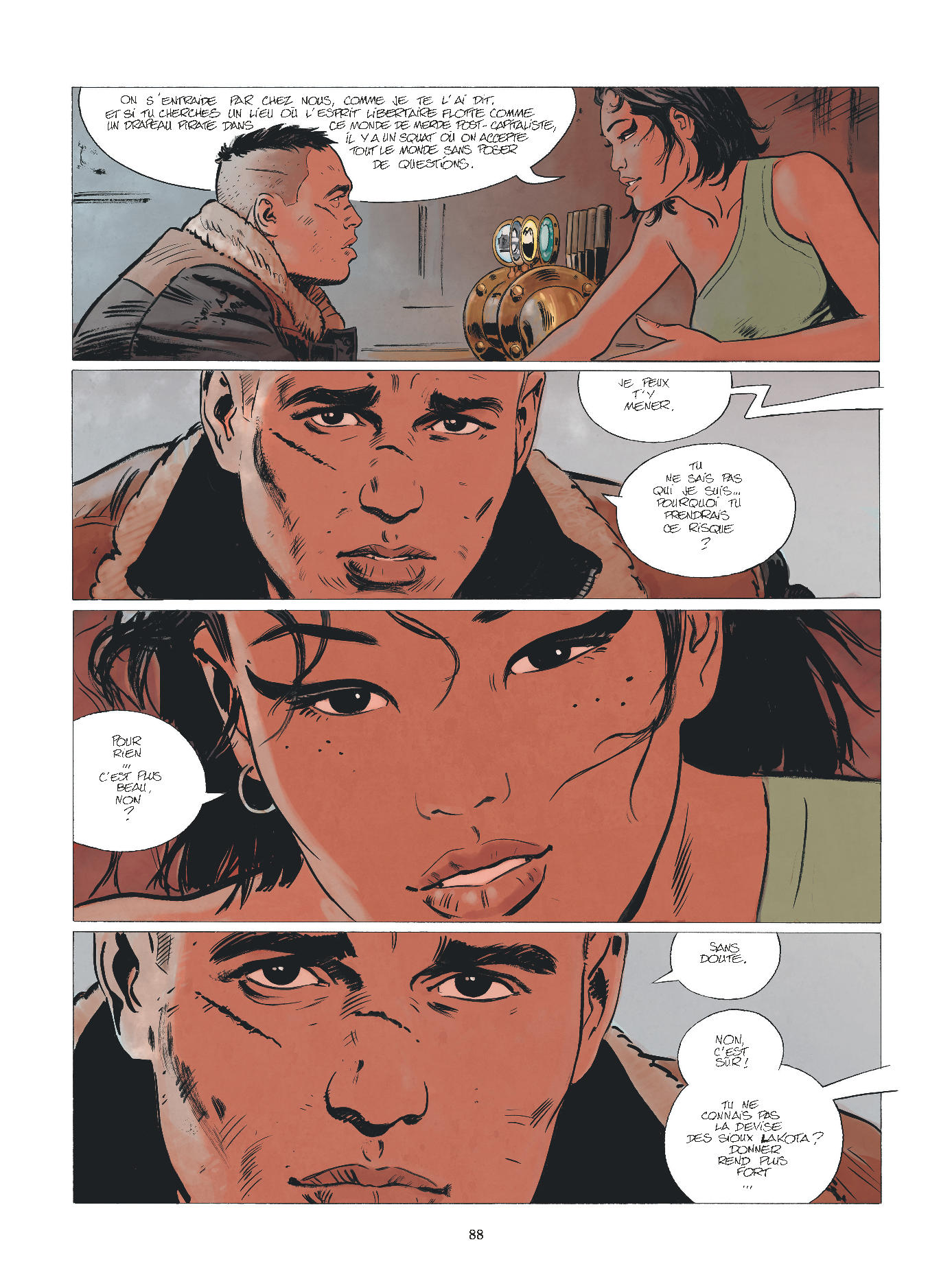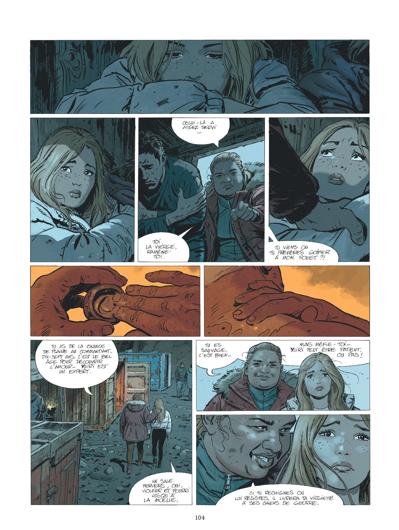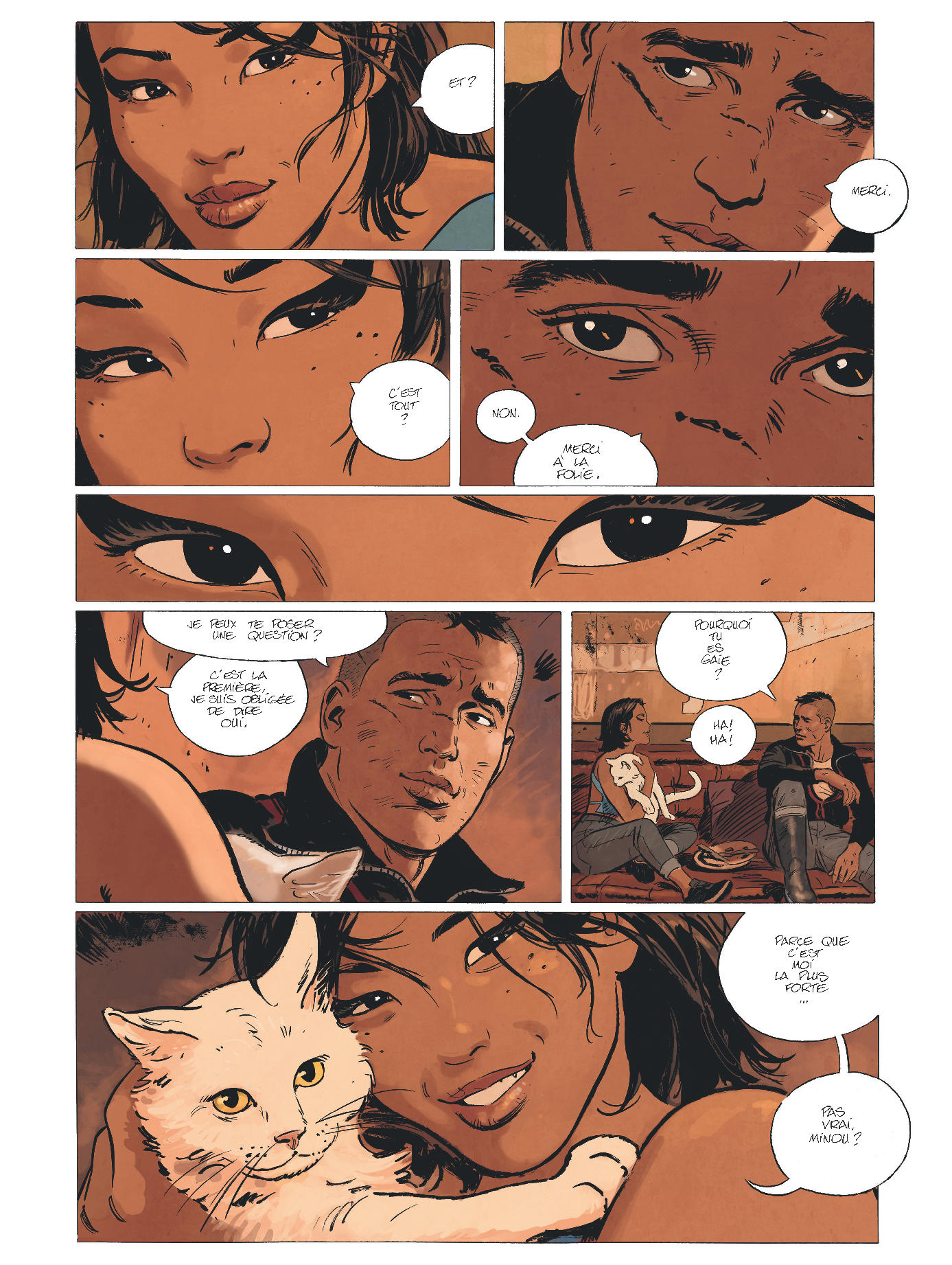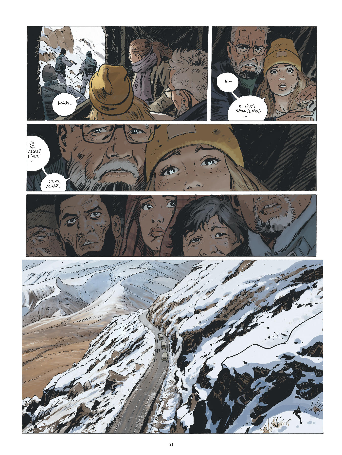 En parallèle, les personnages prennent progressivement de l’épaisseur. Notamment Liam qui semble incarner cette humanité perdue. Un homme dévasté par la guerre, les catastrophes et la perte de tout ce qu’il avait. Son périple commence avec une décision absurde, mais nécessaire afin d’échapper à une mort certaine. Mais, en prenant la place d’une femme impliquée dans un mystérieux projet scientifique, il se retrouve embarqué dans un enchevêtrement d’événements bien au-delà de ce qu’il avait imaginé. Les deux auteurs nous livrent ici une figure de migrant désespéré, prêt à tout pour survivre, mais qui, au fur et à mesure de son aventure, dévoile une humanité enfouie, une étincelle de rédemption dans ce monde si violent. Un personnage dont l’évolution, à la fois tragique et pleine d’espoir, prend le lecteur dans ses filets.