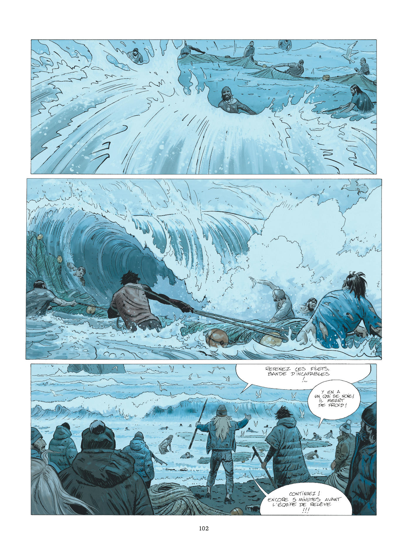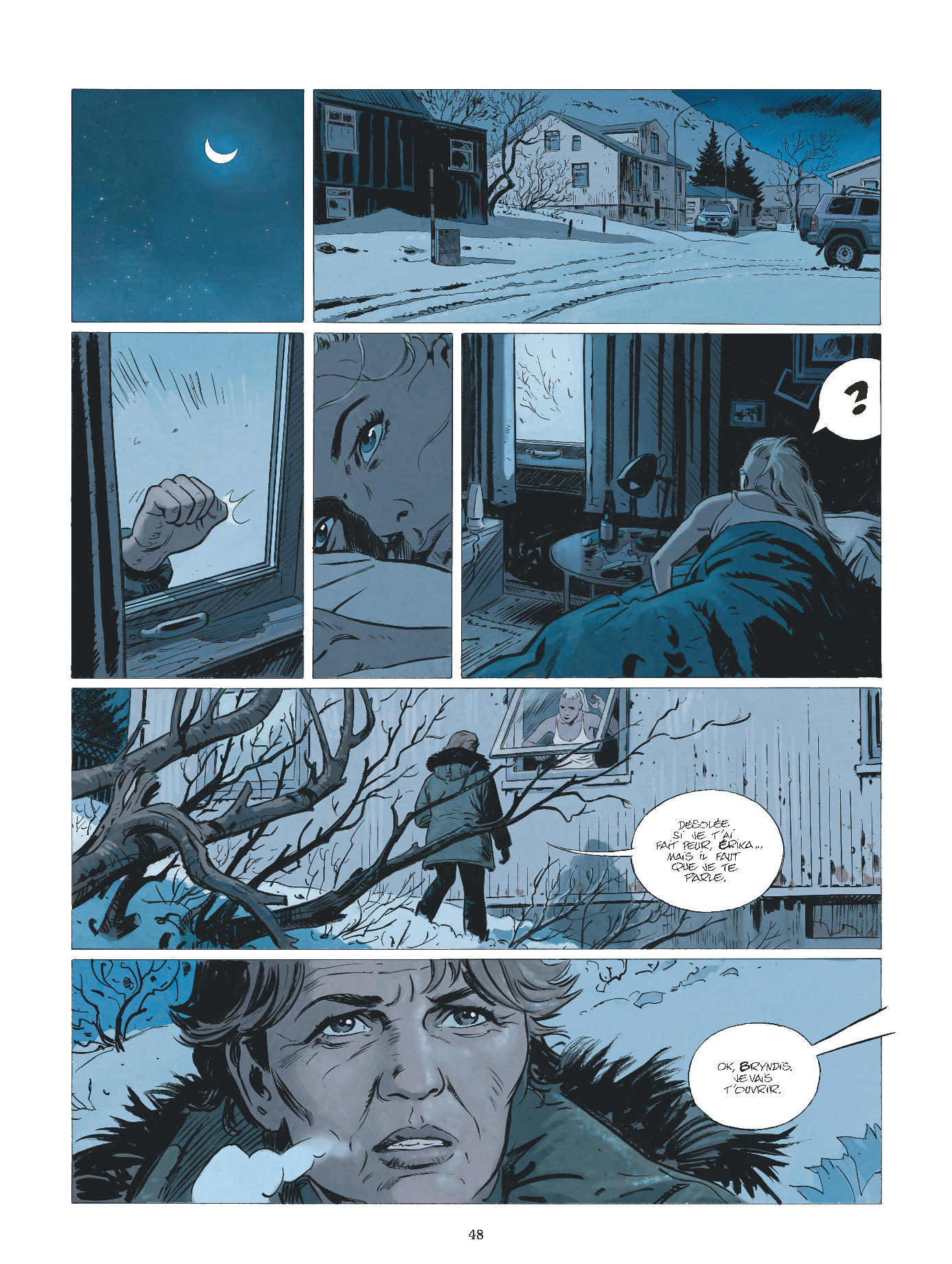 Corentin Rouge, déjà reconnu pour son trait juste et détaillé dans Sangoma ou Rio, nous livre une nouvelle fois des planches d’une grande puissance. La première chose qui frappe, ce sont les paysages glacés et désertiques de l’Islande. Loin des tropiques où l’histoire de Sangoma prenait place, ici l’atmosphère est froide, stérile, et pourtant lourde de significations. La neige, presque aveuglante, envahit les pages, cristallisant cette ambiance de fin du monde qui se déploie lentement mais sûrement. Les contrastes entre l’immensité de la nature islandaise et l’humanité des personnages créent une tension palpable, une symbiose étrange entre la brutalité du climat et la violence sociale qui gangrène ce monde en déclin.