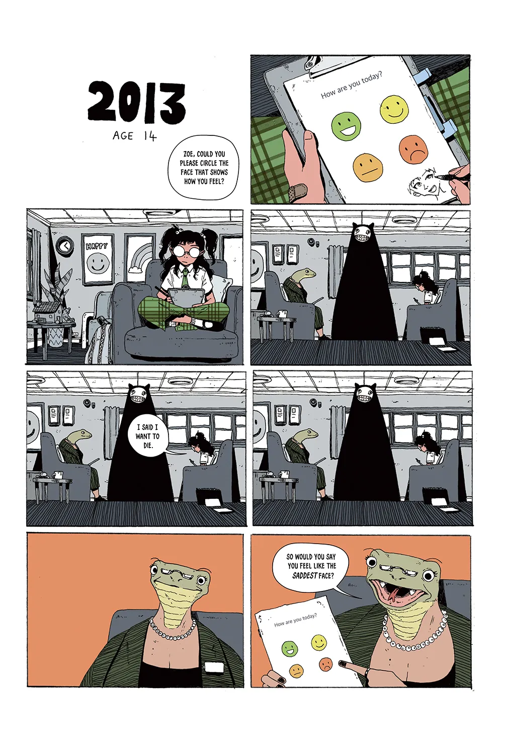 Comme elle l’explique dans l’album, Zoe Thorogood n’a jamais lu d’album sur la dépression qui mettait des mots sur ses démons. Même si les auteurices en publiaient de plus en plus, aucune bande dessinée ne se rapprochait de son vécu. Quoi de mieux que de faire cela soit même.