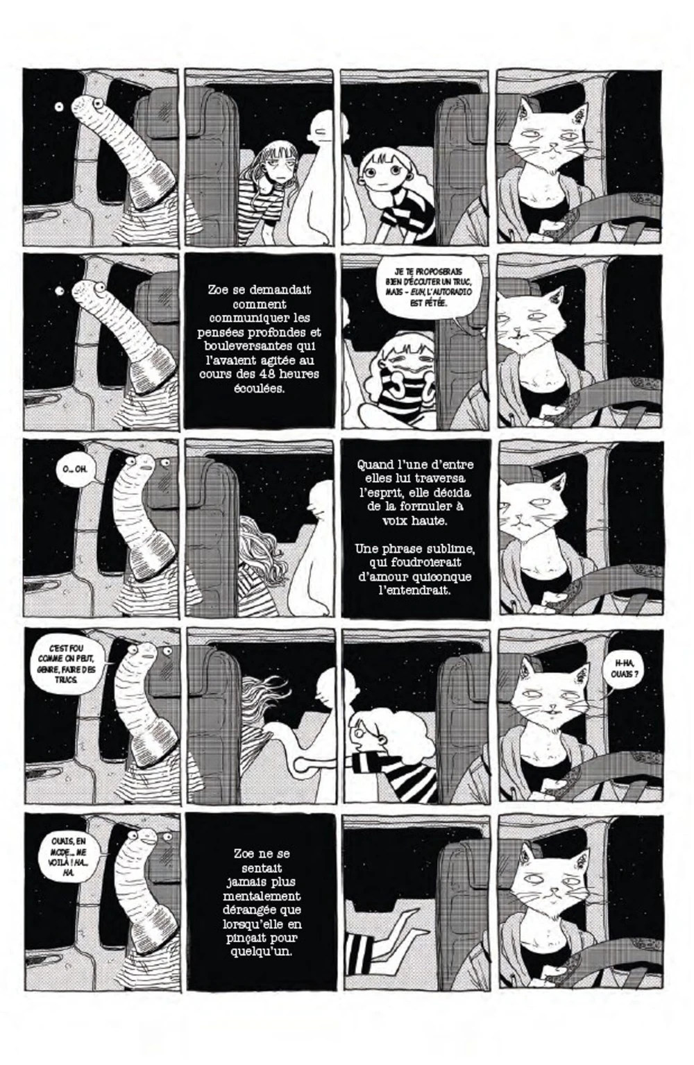 Mais là où Zoe Thorogood est forte, c’est que son propos prend une forme d’intelligence rare. Alors que It’s lonely at the Centre of the Earth ne devait pas être publié en album, ce sont des lecteurs qui l’ont poussé à le faire. Par quelques planches sur son blog, ils se reconnaissent en elle.