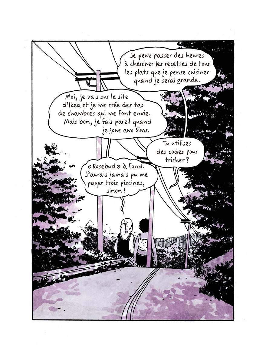 J’adore ce passage met en scène les premiers pas en amour de Rae et Elizabeth. Dans ce très joli récit sentimental, les deux jeunes filles se rapprochent, se touchent, s’embrassent et se questionnent. Pourront-elles vivre cet amour au grand jour ? Pourront-elles un jour le dire à quelqu’un ?