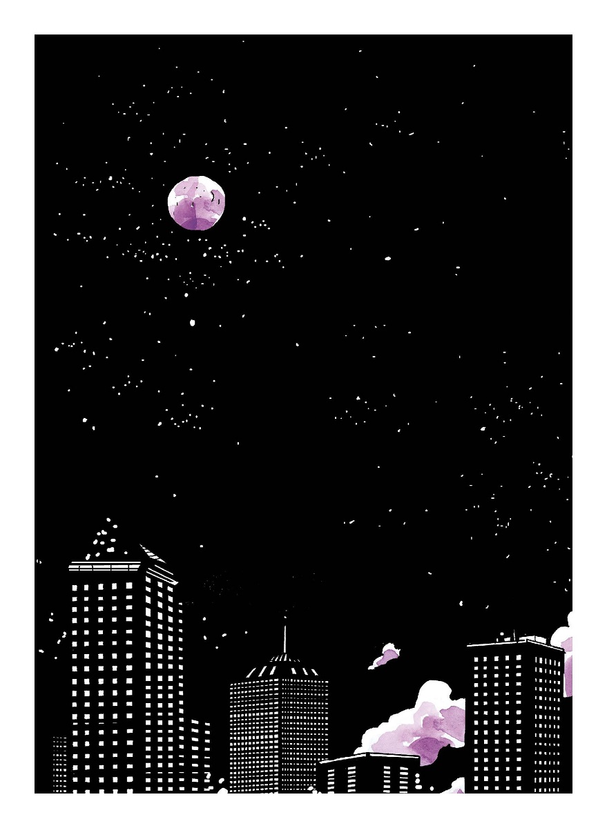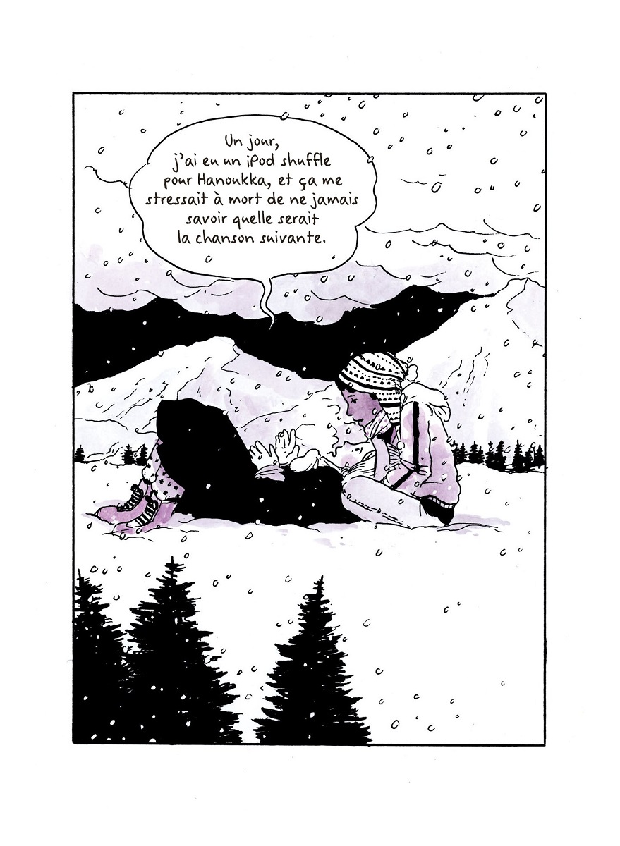 Des teintes de violet rehaussent des dessins au trait épais majestueux. Se moquant des erreurs et de la perfection, l’autrice américaine préfère juste dessiner des images qui lui viennent à l’esprit, ce qu’elle ressent. En travaillant ainsi, sans contrainte, elle est heureuse. Qu’elle continue ainsi, elle nous enchante !