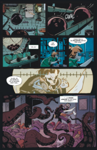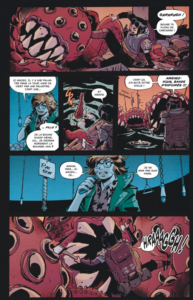 Lorsqu’elle pause le pieds dans ce building, elle ne se doute pas de l’accueil qu’elle va y recevoir. D’abord prise pour le 4 heures d’un mange-boue, une créature belliqueuse à grandes dents et gigantesques tentacules visqueuses, elle sera sauvée in extrémis par l’occupant des lieux. Le candide mais génial Macéo.