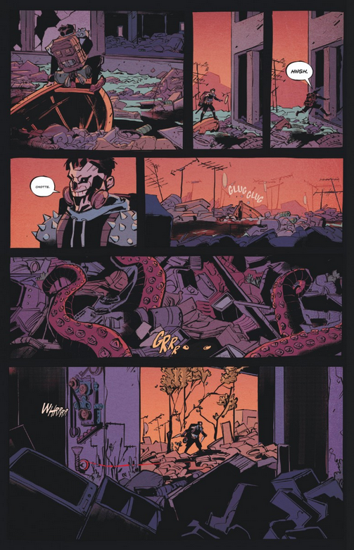C’est une puissante dystopie que nous proposent Jason Aaron et Alexandre Tefenkgi dans cette nouvelle série Once Upon A Time At The End Of The World, une dystopie rafraîchissante serais-je tenté de dire, car truffée d’humour et pleine de peps.