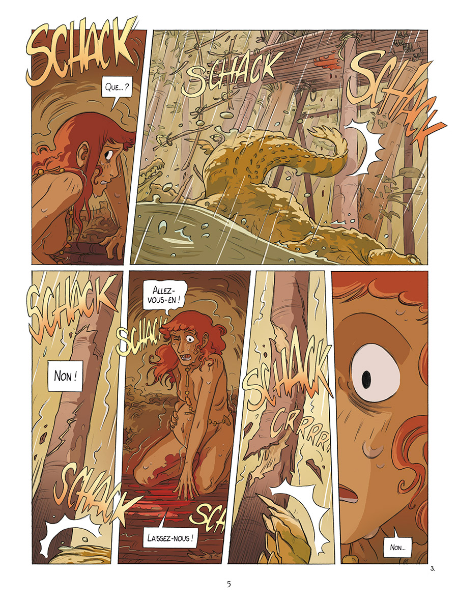 Six ans plus tard. Kanopé est sur le point d’accoucher, seule, dans sa cabane. Elle est dérangée par un caïman attiré par le sang. Par un habile stratagème, elle s’enfuit avec Caï son nouveau-né. Ils sont alors secourus et adoptés par des loutres.