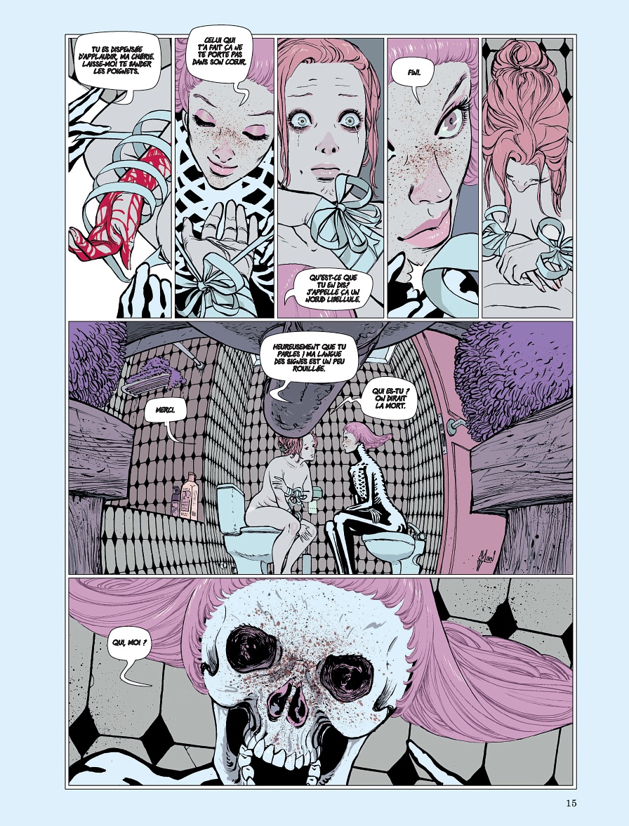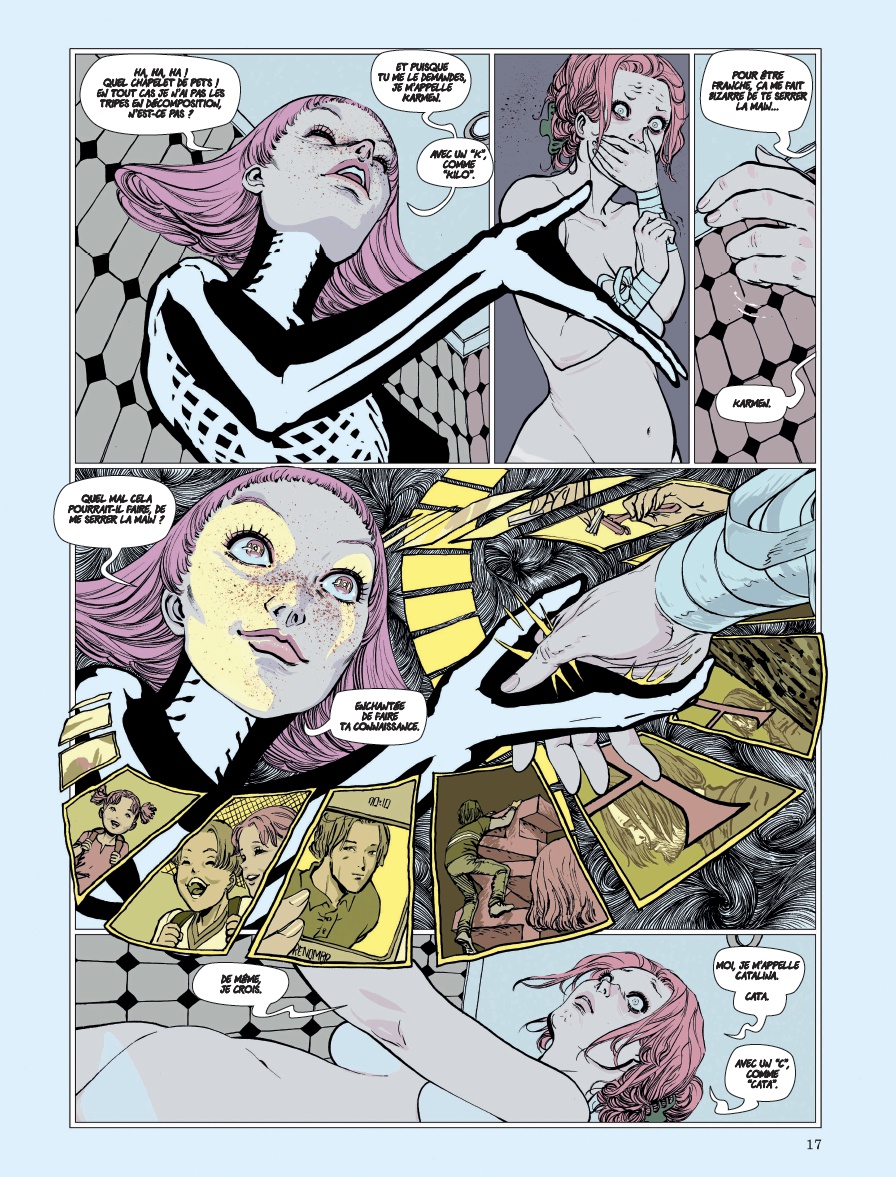 Coté graphisme c’est incroyable, il mêle poésie et dynamisme, il croise les pages au découpage version comics avec des planches où Catalina vole nue dans le ciel tel un ange. C’est vertigineux. L’ensemble emporte le lecteur vers une autre destination, vers un autre espoir, vers une autre vie, vers une autre mort.