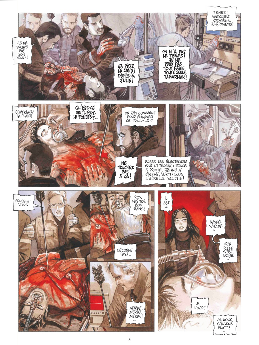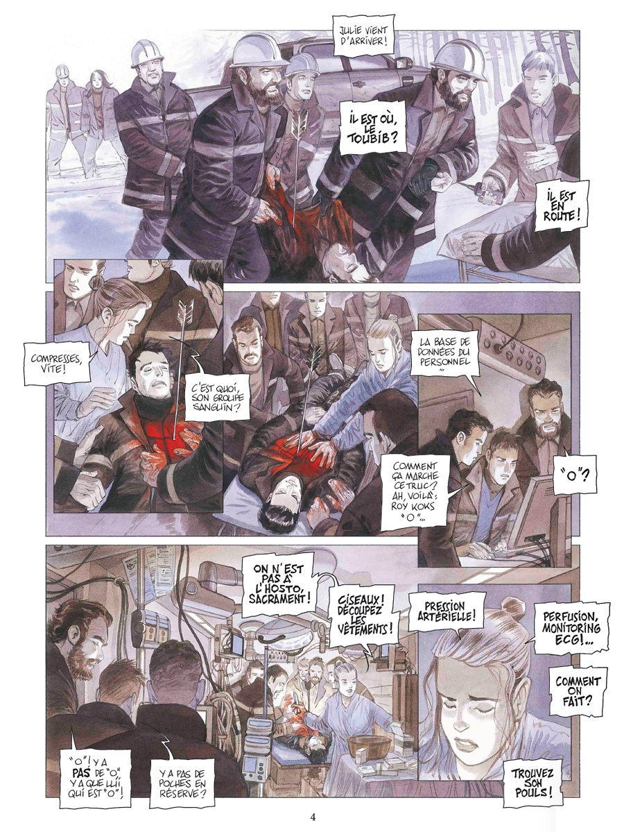 Philippe Gauckler nous pousse dans nos retranchements, il manie l’intrigue avec une très grande dextérité. Plus le lecteur avance dans cette lecture, plus il a envie de comprendre les liens qui unissent cette terre, cette sphère et ces personnages. Il maintient le suspens tout au long de ce premier tome et le ponctue d’une manière magistrale. Ses dessins entièrement réalisés en couleurs directes sont splendides. L’utilisation quasi-systématique des tons bleus n’est sûrement pas due au hasard.