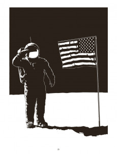Résumé de l’éditeur : Le 20 juillet 1969, le monde entier, figé devant sa télévision, est sidéré par l’exploit : les Américains ont aluni ! Et avant les Soviétiques ! Malgré une frayeur technique, tout s’est bien passé. Pourtant, au moment de repartir, Armstrong se retourne une dernière fois pour observer le paysage et reste figé : dans la visière de son casque, se reflète un drapeau soviétique et un LEM russe…