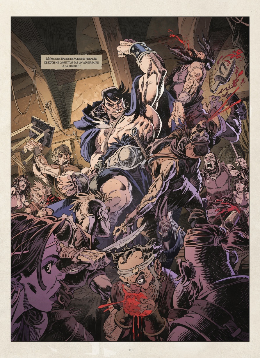 Résumé de l’éditeur : Dans cette aventure inédite, le Cimmérien qui n’est pas encore roi accepte une mission simple : délivrer la fille d’un chef de clan enlevée par un rival. Mais dans les ruelles fétides de Hud-hund Engaun, les apparences sont trompeuses… Epuisé par ses aventures, un puissant barbare arrive dans une ville frontalière en proie aux brigands de la pire espèce. Engagé pour sauver la fille d’un chef de gang au milieu d’une guerre de territoires, le guerrier solitaire pense accepter un contrat facile. Il se jette dans une conspiration mortelle. Plongé malgré lui dans ce nid de vipères, la « Bête du Nord » va devoir rappeler à ces criminels ce qu’est la véritable sauvagerie.