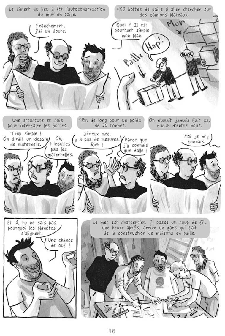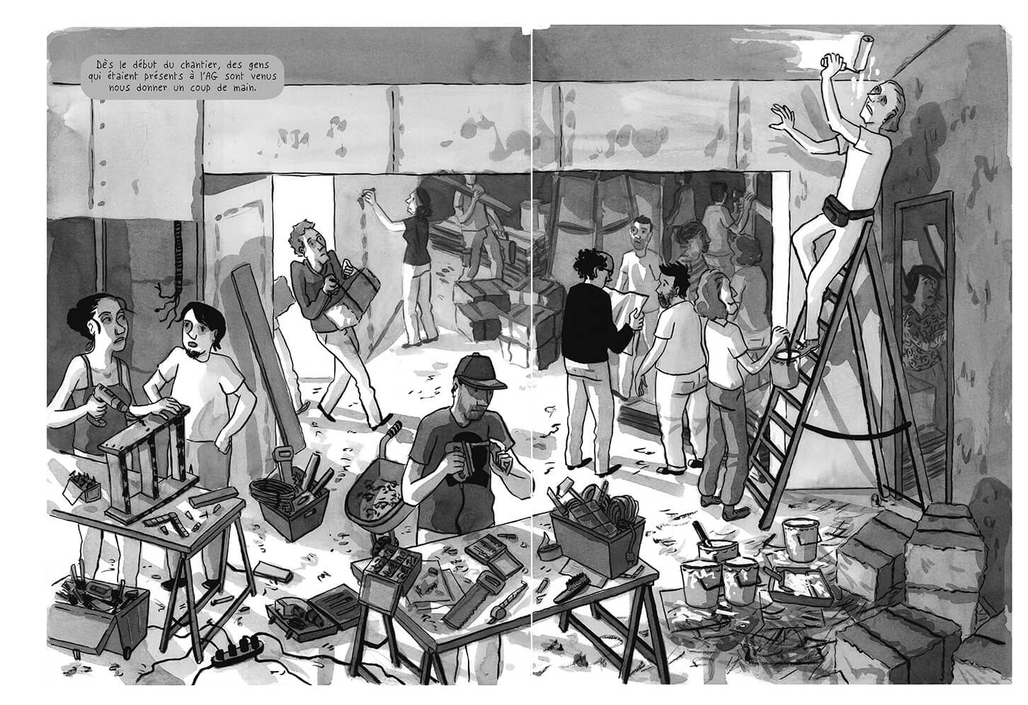 Si Thibaut Lambert avait abordé les violences faites aux femme dans De rose et de noir ou l’homosexualité chez les personnes âgées dans Au coin d’une ride, il n’avait pas encore pris le temps de s’attaquer à la BD-documentaire. L’auteur des Frontières du douanier Rousseau, fréquente La Bigaille, connaît ses membres. Il lui reste donc à coucher sur le papier ses débuts, les échanges et son aménagement.