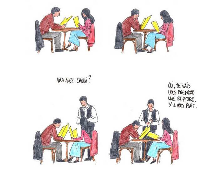 Quel est le quotidien d’un jeune couple ? Bastien Vivès fait un focus sur ces instants fragiles, parfois joyeux, parfois tristes. Des premiers temps où l’on s’embrasse, où l’on attend que l’autre appelle, où l’on se dit que c’est fou et que c’est elle/lui; jusqu’à la rupture inéluctable.