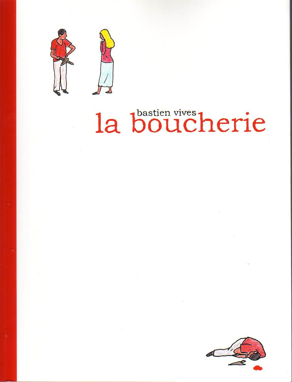 Résumé de l’éditeur : La Boucherie, un album intimiste et délicat publié par Warum en 2009, se pare d’une nouvelle couverture cartonnée pour prolonger l’aventure. Autopsie d’une histoire d’amour morte, La Boucherie raconte ces derniers instants assassins dans la vie d’un couple, l’indifférence, la douleur, l’incompréhension, la douleur encore. Tout en douceur et au crayon de couleur, écrit en un mois à la suite d’un chagrin d’amour, ce sont mille chagrins que nous revivons, aux côtés de ce couple sans nom. Un livre à recommander à tous les fans de l’auteur, aux amoureux, aux curieux et aux bourreaux des coeurs.