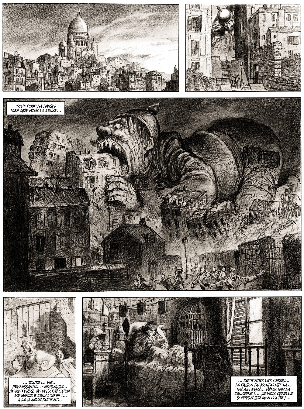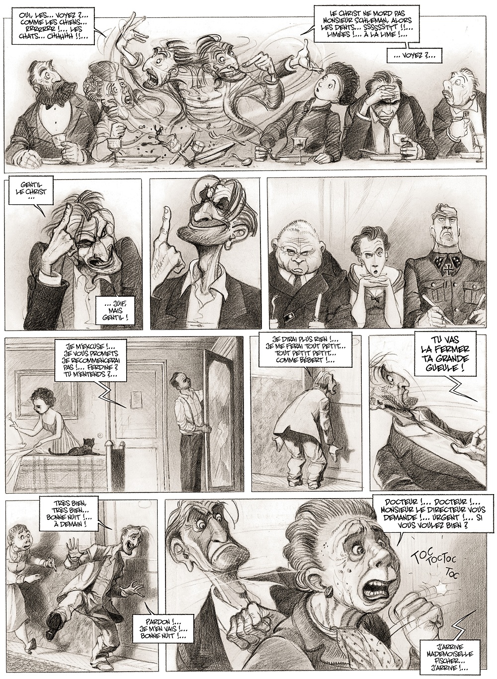 Les « Céliniens « retrouveront tout cela dans ce bel album. Les moins familiers de l’oeuvre en seront peut-être désorientés. Il leur restera à apprécier le beau travail graphique des jumeaux Brizzi ( réalisateurs de dessins animés, peintres et illustrateurs ) et leurs planches dynamiques, leurs demi ou pleines pages où les camaïeux de gris font merveille.