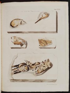 On appréciera la reproduction des dessins de Mary Ann Mantell dans l’album. Certains historiens attribuent d’ailleurs la découverte de la dent à l’épouse de Gideon et non à lui. Elle l’aurait trouvé sur le bord de la route.