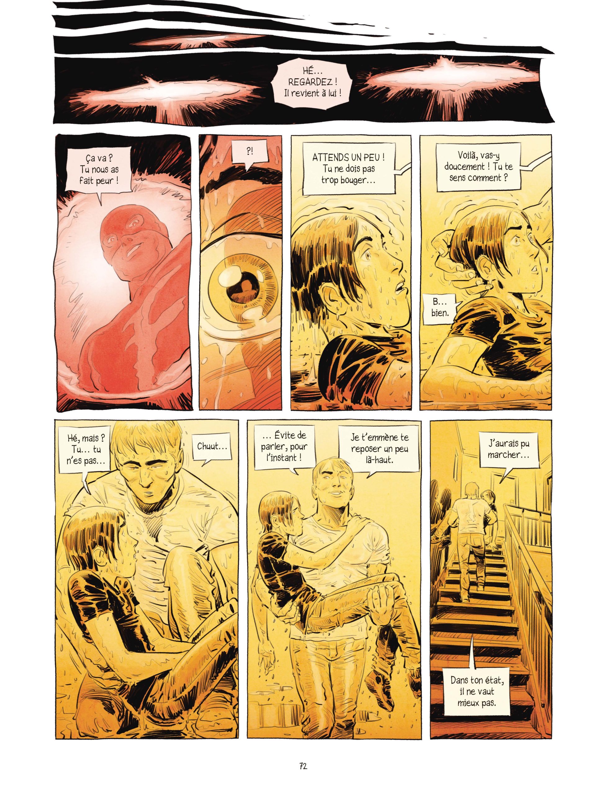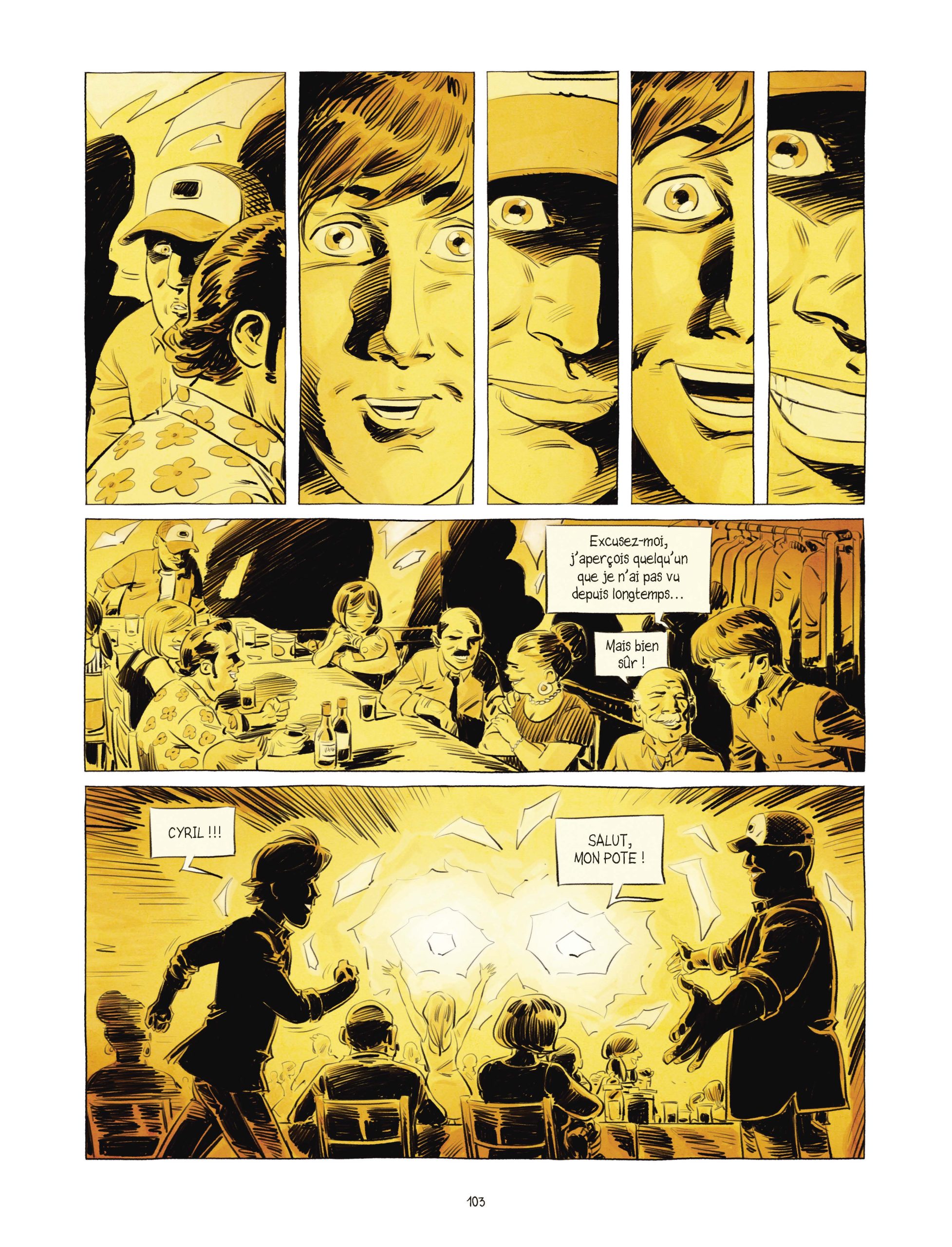 D’un point de vue graphique, le trait de l’auteur est toujours aussi saisissant. On s’arrête sur toutes les cases car tout est bien posé à sa place et elles nous happent littéralement dans son univers. Que dire de tous ces visages aux détails si appliqués ? À commencer par Laurent Astier lui-même qui se dessine jeune avec un réalisme impressionnant. Mais le plus frappant reste la multitude d’émotions qui émanent des protagonistes : la joie, le rire, la tristesse, la peur, le doute, l’espoir : nous les ressentons avec eux.