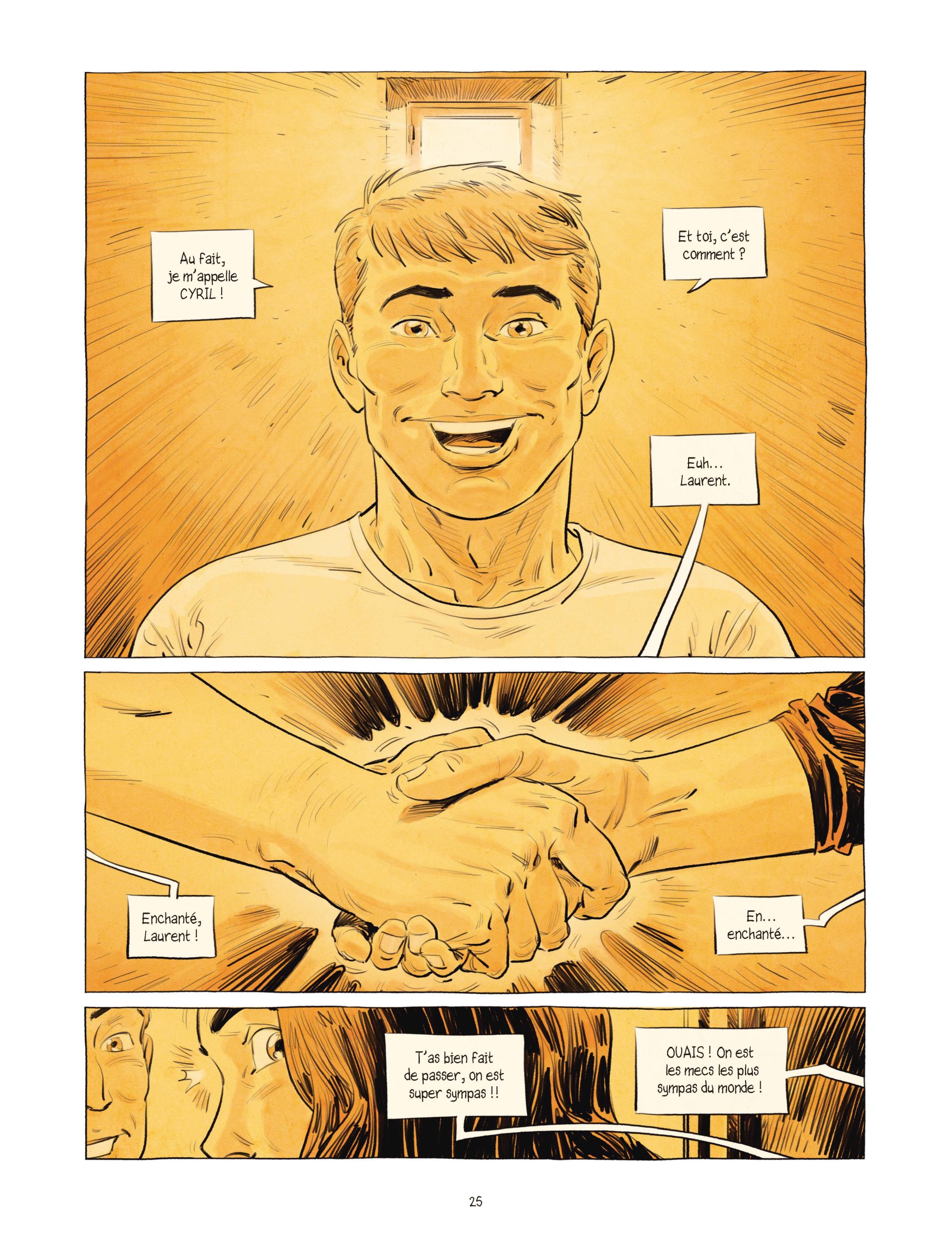 Mais la joie sur le visage de Laurent cède brusquement à l’effarement. Cyril n’est plus le même. Laurent se retrouve face à un corps gonflé et affaibli. L’exact opposé de l’ami plein de vie qu’il avait laissé un an plus tôt. Cyril lui apprend être atteint de deux graves pathologies : une maladie auto-immune à laquelle s’ajoute un cancer du thymus. Une fois le choc encaissé, et la culpabilité surmontée, Laurent ne le quittera plus. Jusqu’au bout.