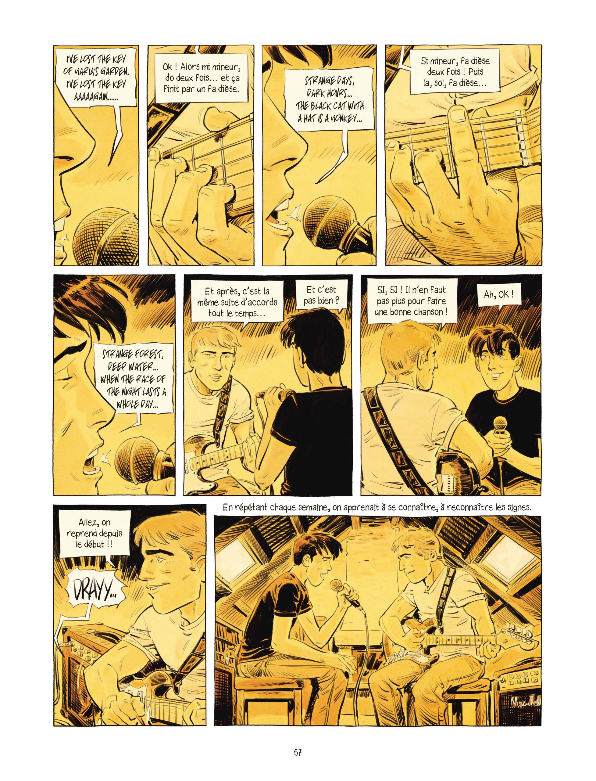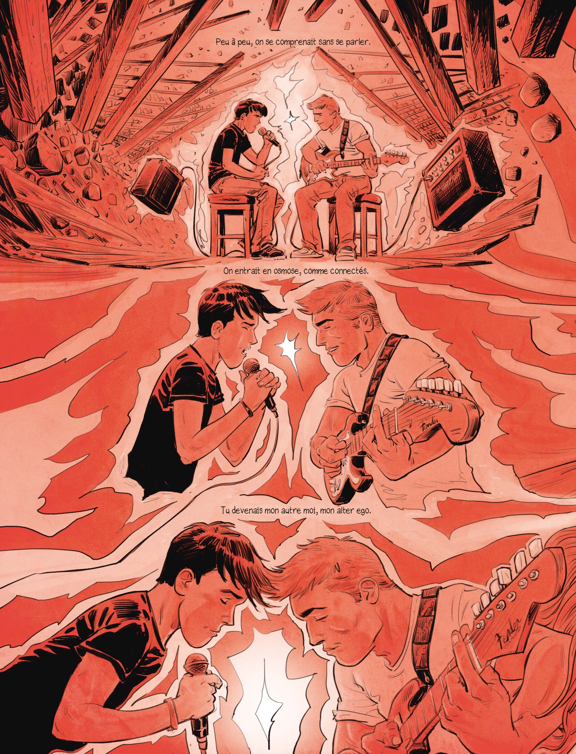 La première page, les premiers mots, les premières cases qui apparaissent et s’envolent. Un seul visage. Celui de Cyril habillé d’un éclatant sourire. On le sait d’emblée : son pote, son copain, son ami, son frère n’est plus. Du moins physiquement. Mais Laurent vit avec cette absence et cette douleur que n’importe quel souvenir peut raviver. Comme à l’écoute de ce titre emblématique des Pink Floyd, Wish you were here. Oui, il aurait tant aimé qu’il soit là. Alors, même s’il faut vivre avec ses blessures, Laurent a besoin d’ouvrir cette plaie pour replonger dans son passé et retrouver son ami.