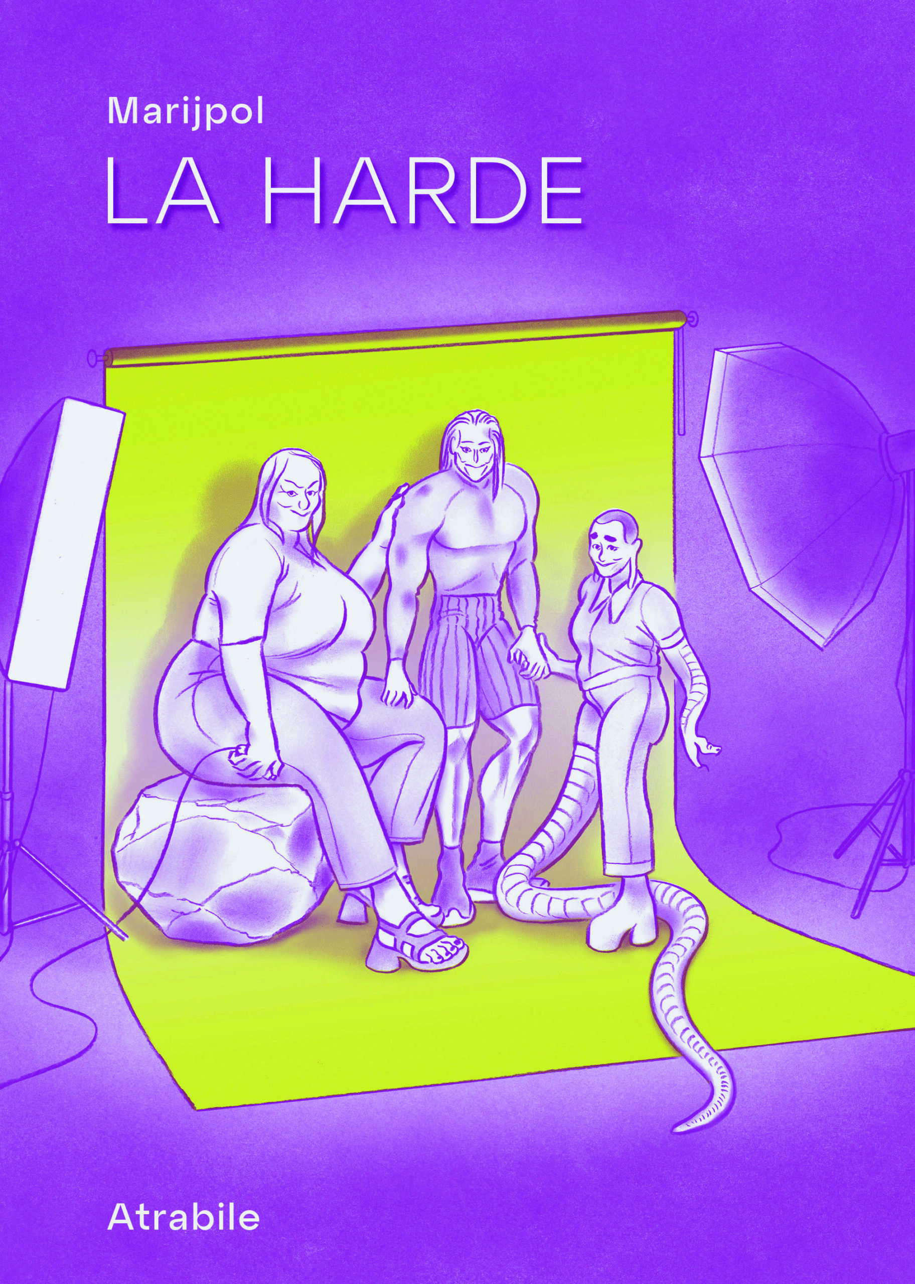 Résumé de l’éditeur : Petra, Ulla et Denise vivent toutes les trois en colocation, dans une disharmonie assumée et somme toute équilibrée; chacune d’elle se distingue par sa personnalité originale, son envie de sortir des codes et de s’émanciper des nombreuses injonctions sociétales qui s’imposent à elles, avec, comme maître mot, l’indépendance. Petra est bodybuildeuse, et sa vie n’est que protéine, muscle et apparence; Ulla, archéologue, ressemble littéralement à une géante, franchement volumineuse et dépassant d’une tête toutes les autres; Denise, elle, enseigne le yoga mais marchande également le venin extrait de son bras-serpent, considéré comme une lotion de beauté miracle. Des notions comme le couple, la maternité, la famille, semblent bien loin de leurs préoccupations. Mais à quelques rues, dans un appartement transformé en véritable capharnaüm, vivent trois enfants abandonnés par leur génitrice et livrés à eux-mêmes. Lorsque les trois femmes vont rencontrer les enfants, leurs réactions et sentiments, mélanges d’inquiétude, de sollicitude et de maladresse, vont lentement évoluer, jusqu’à donner naissance à des liens forts et uniques avec la jeune fratrie. Dans La Harde, Marijpol nous promène dans une société fantasque et futuriste, miroir de la nôtre, et chemin faisant, construit une espèce de comédie dramatique qui évoque la douceur et la bienveillance de l’univers de Kore-eda, mais surtout, interroge et explore le concept de norme, qu’il s’applique au corps, à la féminité, au couple ou à la famille. Brillant !