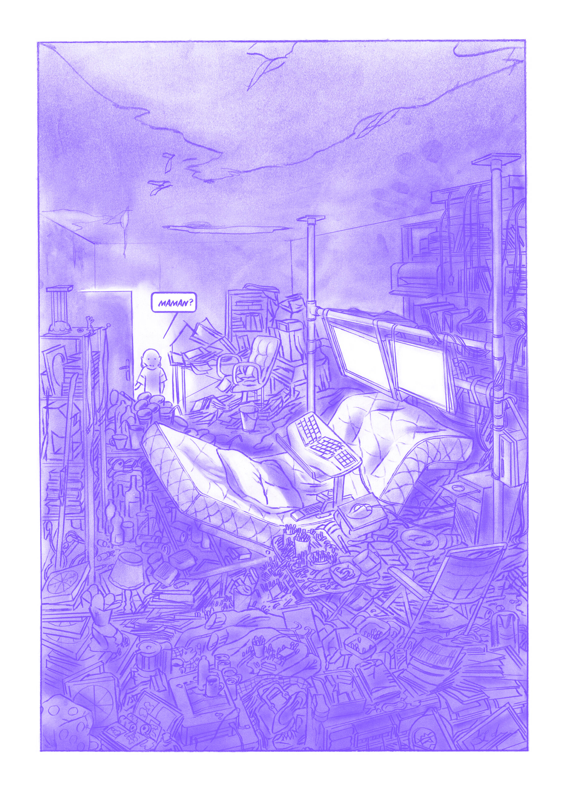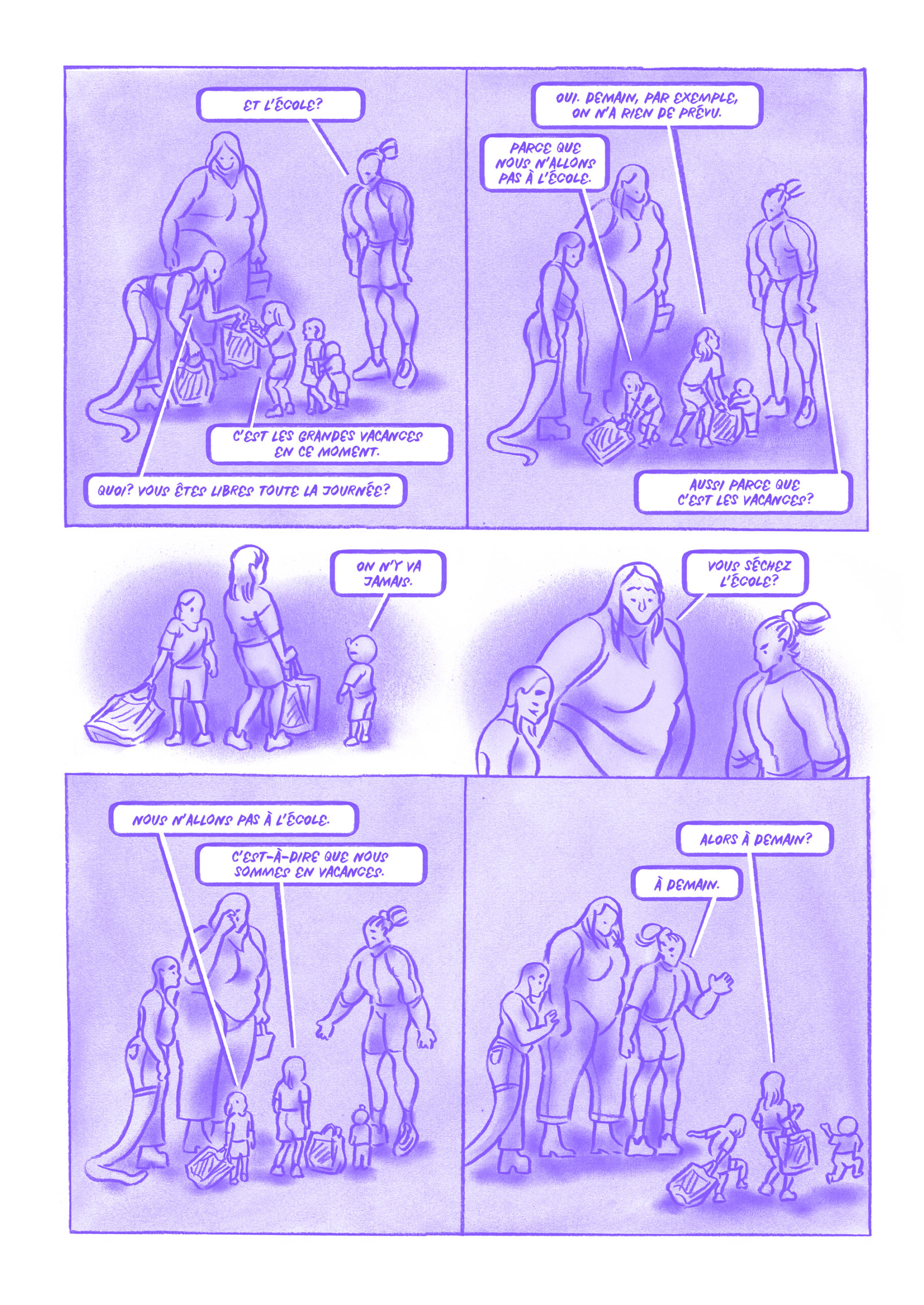 L’album dans un très joli violet dégradé est une comédie dramatique mâtinée d’une vraie douceur et d’une bienveillance non-feinte. La harde est un récit ambitieux entre fantastique, anticipation, réel et famille de cœur. Une très belle bande dessinée optimiste sur les liens humains.