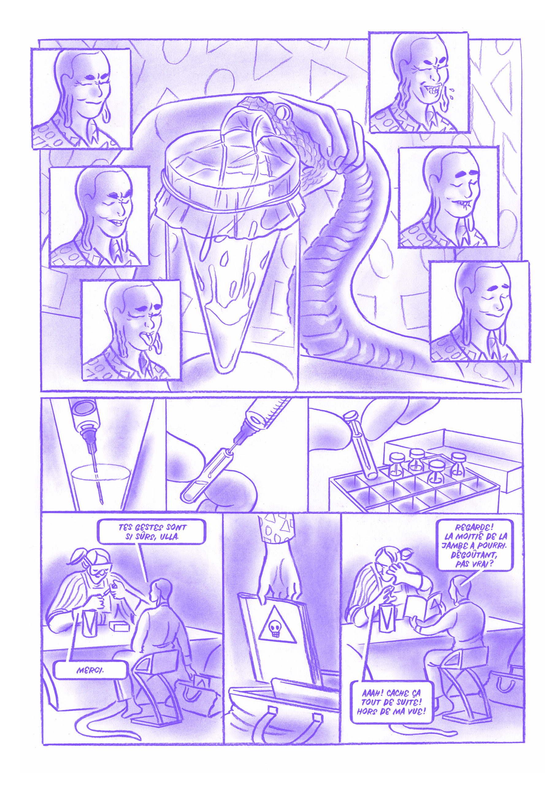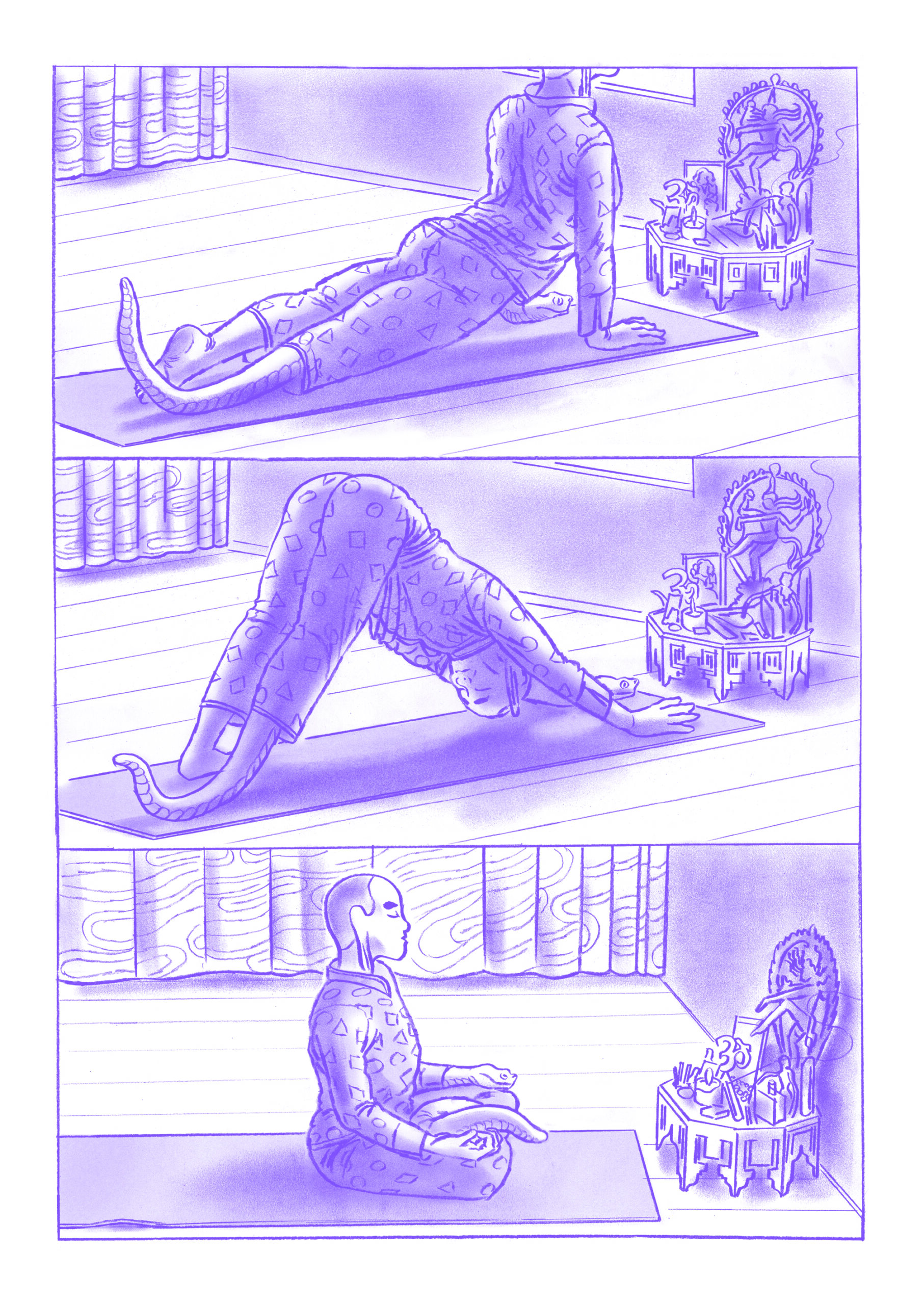 Denise est une femme-serpent. Son bras gauche se termine par une tête de reptile et sa jambe droite est une longue queue. Elle partage son temps entre des cours de yoga qu’elle dispense et le venin qu’elle extrait de son bras qu’elle vend comme une lotion de beauté.