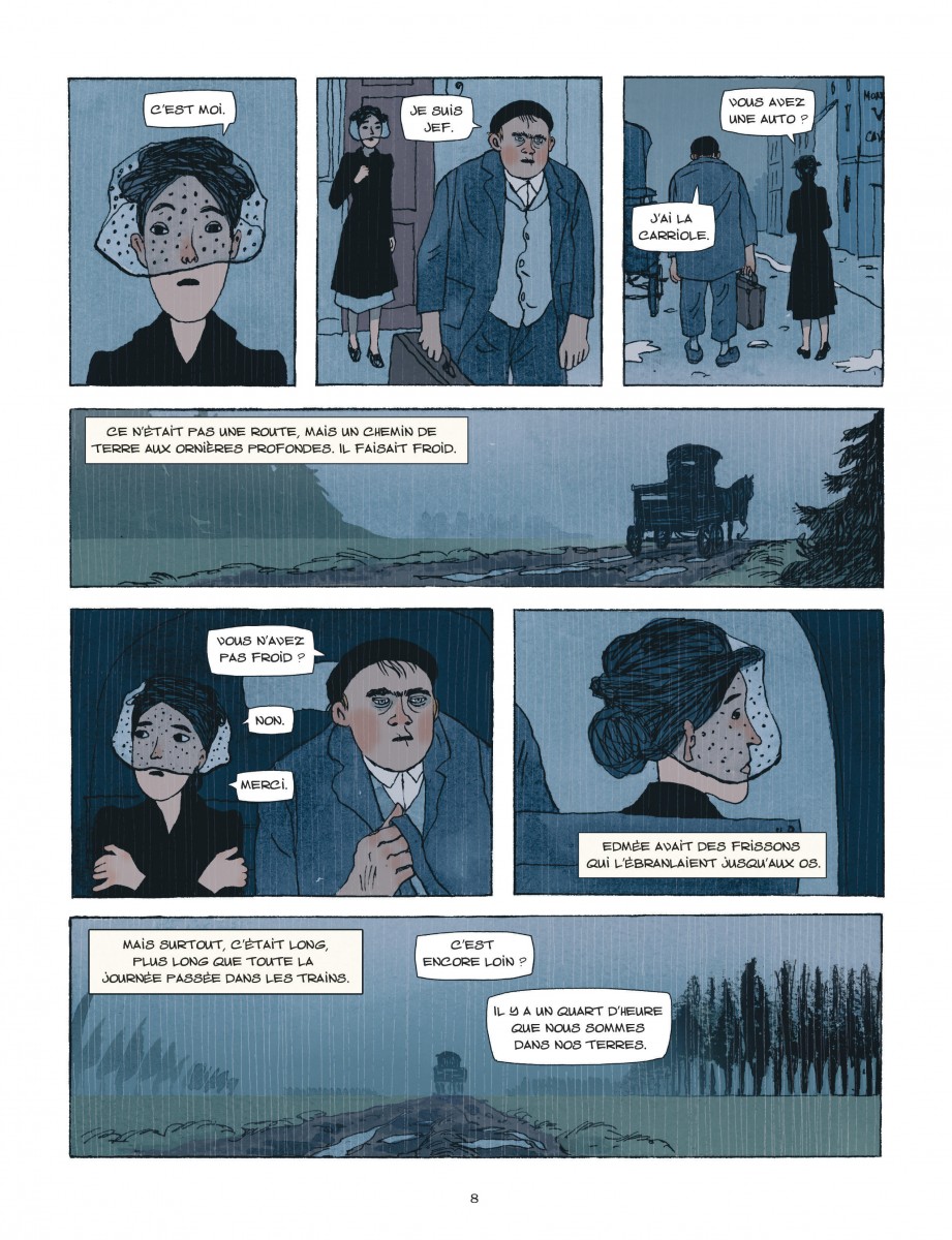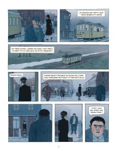Il faut ici tout le talent graphique d’Edith pour restituer ce qui a fait la force du romancier : l’atmosphère plutôt que l’intrigue. Car si cette dernière est classique, elle est magnifiée par un sens du cadrage rigoureux, un trait charbonneux et des couleurs froides dominées par les gris bleu.