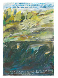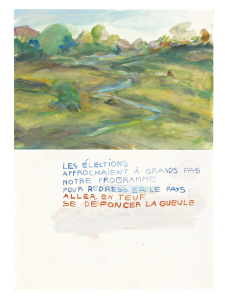 Alors la philosophie de l’adolescent prend une tournure presque poétique, comme les dessins de Valfret. On plonge dans de grandes illustrations à la limite de l’abstraction. Comme pour inciter le lecteur à réfléchir, à intégrer le récit. Une poésie politique entre changements climatiques, exode rural, bruissement des gilets jaunes, déterminisme social, liberté du corps, liberté dans le sexe et homosexualité.